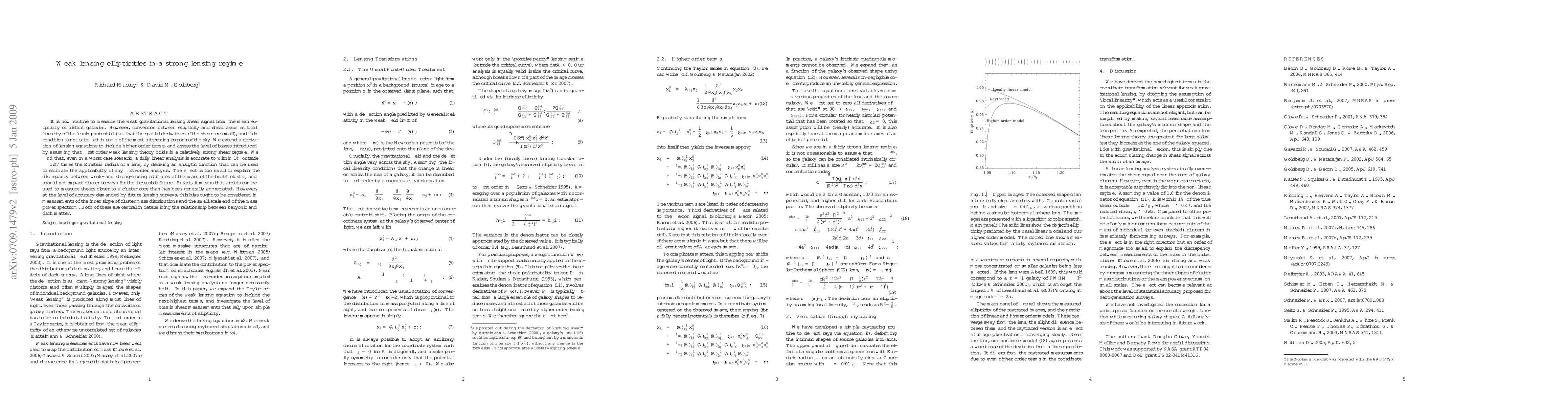 It is now routine to measure the weak gravitational lensing shear signal from the mean ellipticity of distant galaxies. However, conversion between ellipticity and shear assumes local linearity of the lensing potential (ie that the spatial derivatives of the shear are small), and this condition is not satisfied in some of the most interesting regions of the sky. We extend a derivation of lensing equations to include higher order terms, and assess the level of biases introduced by assuming that first-order weak lensing theory holds in a relatively strong shear regime. We find that, even in a worst-case scenario, a fully linear analysis is accurate to within 1% outside ~1.07 times the Einstein radius of a lens, by deriving an analytic function that can be used to estimate the applicability of any first-order analysis. The effect is too small to explain the discrepancy between weak- and strong-lensing estimates of the mass of the bullet cluster, and should not impact cluster surveys for the forseeable future. In fact, it means that arclets can be used to measure shears closer to a cluster core than has been generally appreciated. However, at the level of accuracy demanded by future lensing surveys, this bias ought to be considered in measurements of the inner slope of cluster mass distributions and the small-scale end of the mass power spectrum. Both of these are central in determining the relationship between baryonic and dark matter.