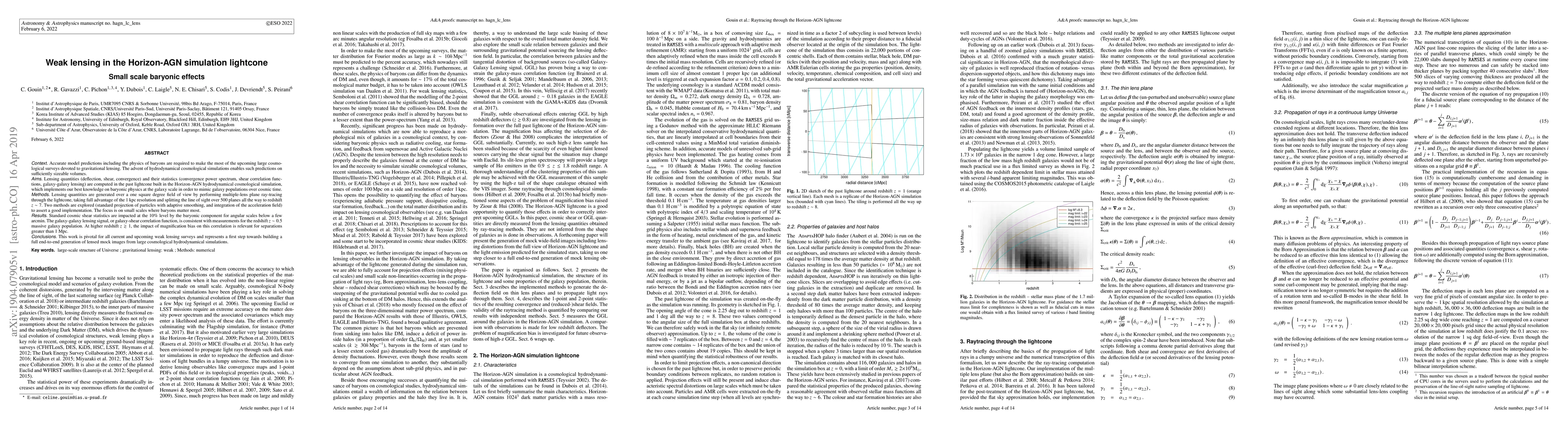 This paper investigates weak lensing effects in the Horizon-AGN simulation lightcone, focusing on small-scale baryonic influences. It finds that baryonic physics impacts standard cosmic shear statistics by 10% on small angular scales, and validates galaxy-galaxy lensing signals for massive galaxies at lower redshifts.