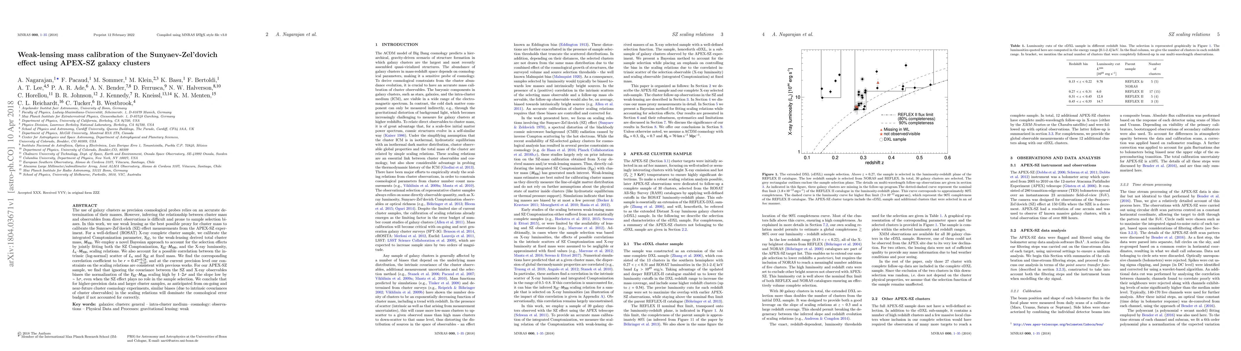 This paper calibrates the Sunyaev-Zel'dovich (SZ) effect measurements from the APEX-SZ experiment using weak lensing to determine cluster mass, addressing selection biases through a novel Bayesian approach. The study finds that ignoring the covariance between SZ and X-ray observables can bias scaling relations, highlighting the importance of accounting for these effects for future high-precision cluster cosmology experiments.