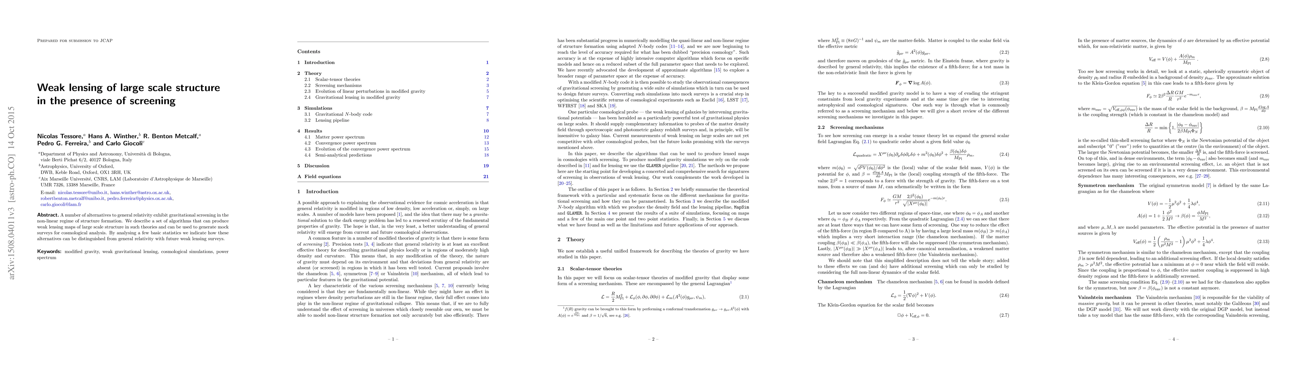 This paper develops algorithms to generate weak lensing maps for large scale structures under gravitational screening theories, and proposes methods to distinguish these alternatives from general relativity using future weak lensing surveys.