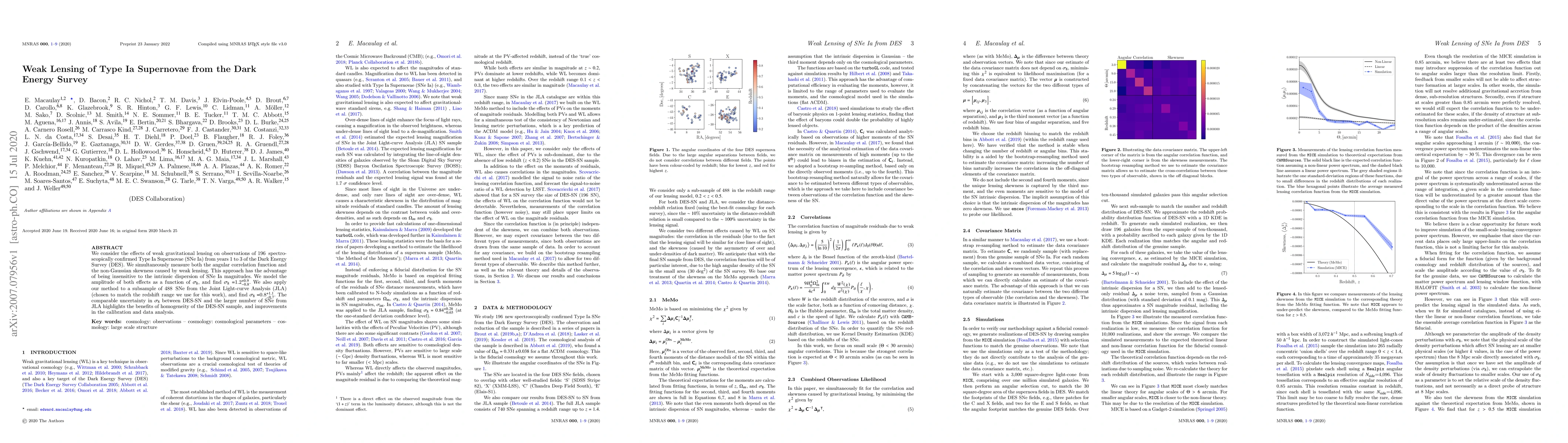 Researchers used weak lensing to analyze 196 Type Ia Supernovae from the Dark Energy Survey, finding a value of $oxed{rac{1.2}{0.8}}$ for the parameter $oxed{rac{oldsymbol{ imes}}{oldsymbol{ imes}}oldsymbol{8}}$. The analysis shows promise for using weak lensing to improve measurements of cosmological parameters.