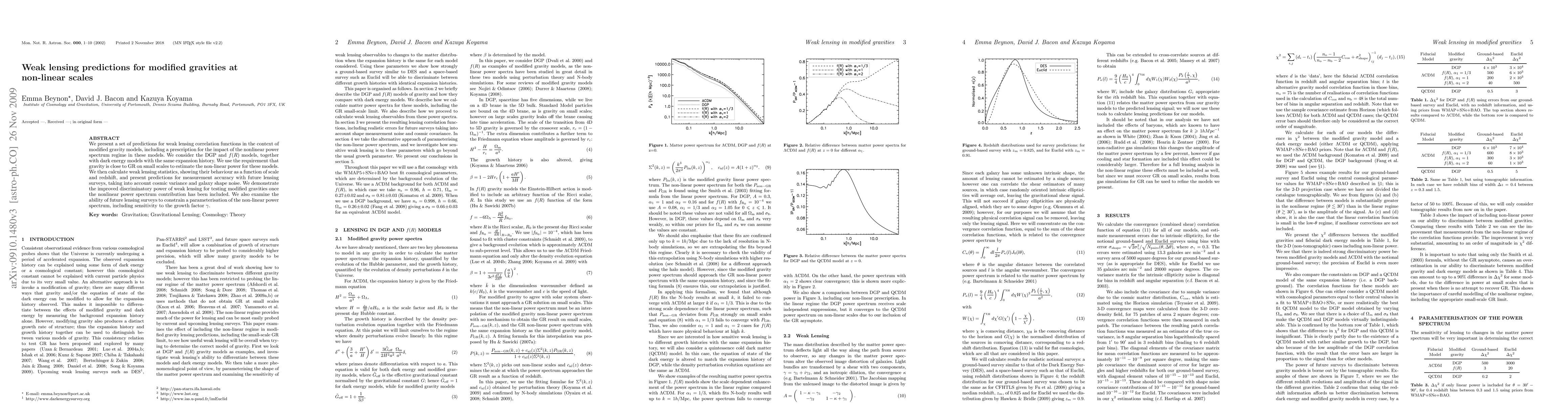 This paper predicts weak lensing correlation functions for modified gravity models like DGP and f(R), incorporating the nonlinear power spectrum regime. It assesses the discriminatory power of weak lensing in testing these models and examines future lensing surveys' ability to constrain non-linear power spectrum parameters.