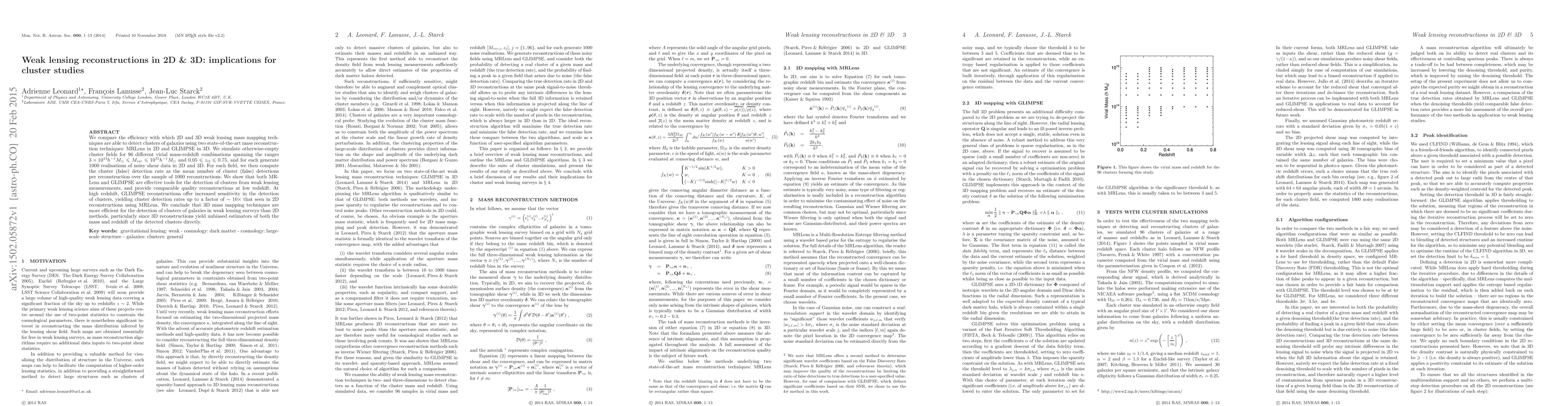 This paper compares the effectiveness of 2D and 3D weak lensing techniques for detecting galaxy clusters, finding that 3D methods (GLIMPSE) are significantly more sensitive at high redshifts, up to 10 times more effective than 2D methods (MRLens), especially for unbiased mass and redshift estimation.