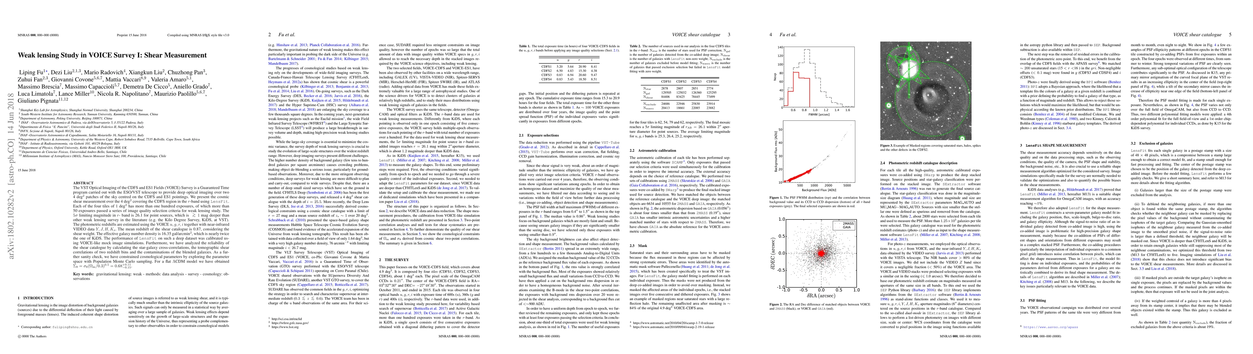 This paper presents a cosmic shear measurement from the VOICE Survey using the ESO/VST telescope, achieving a $5\sigma$ limiting magnitude of 26.1 in the $r$-band. The study estimates photometric redshifts and constrains cosmological parameters, obtaining $\Sigma_8 = 0.68^{+0.11}_{-0.15}$ for a flat $\Lambda$CDM model.