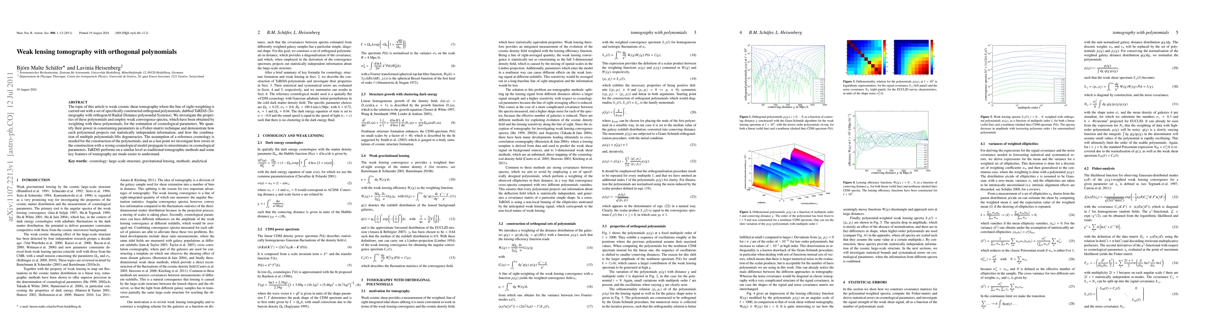 This paper explores weak cosmic shear tomography using TaRDiS, a method that leverages orthogonal polynomials for line-of-sight weighting. It demonstrates how these polynomials extract independent information and improve parameter estimation, while also discussing the impact of model errors on cosmological parameter estimates.