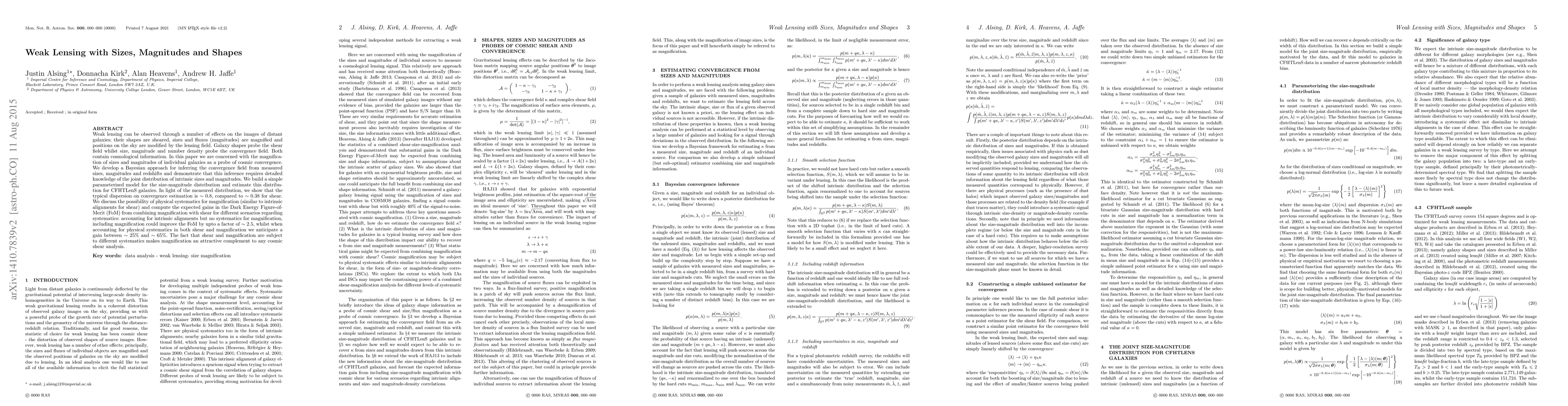 This research is significant as it explores the potential of galaxy sizes and magnitudes as probes of cosmic convergence, offering a new avenue for cosmological parameter estimation and complementing existing cosmic shear analyses.