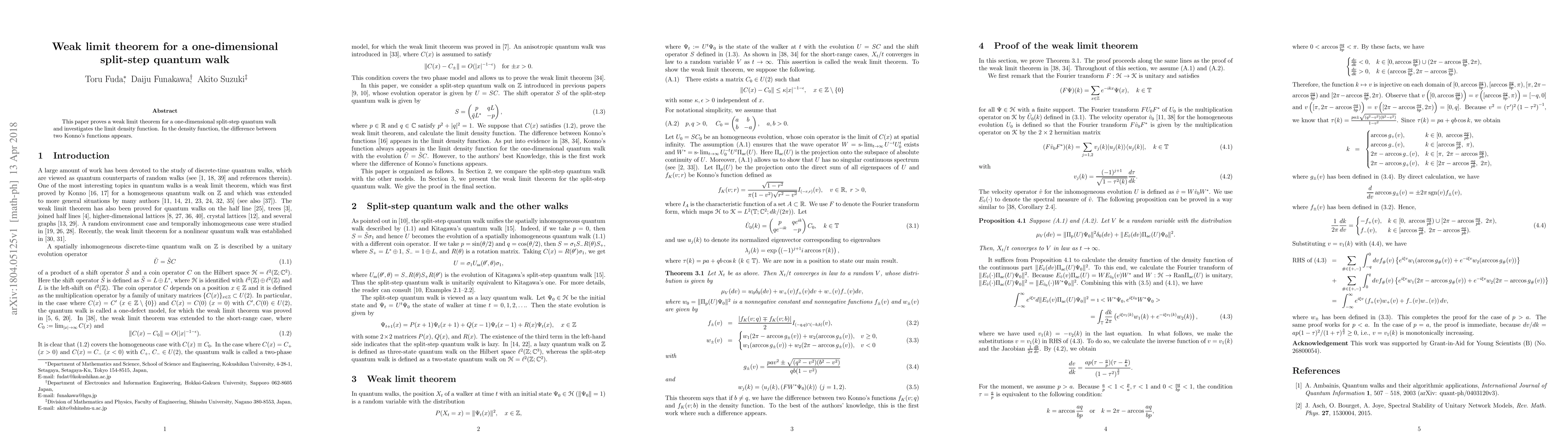This paper establishes a weak limit theorem for a one-dimensional split-step quantum walk and explores the resulting limit density function, revealing an expression involving the difference between two Konno's functions.