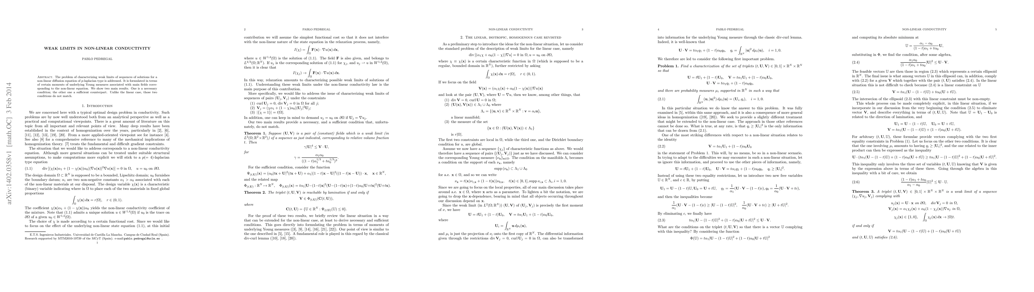 This paper investigates weak limits of solutions for a non-linear diffusion equation of $p$-laplacian type, focusing on the moments of underlying Young measures. It presents a necessary condition and a sufficient counterpart for weak limits, highlighting that these conditions differ from the linear case.