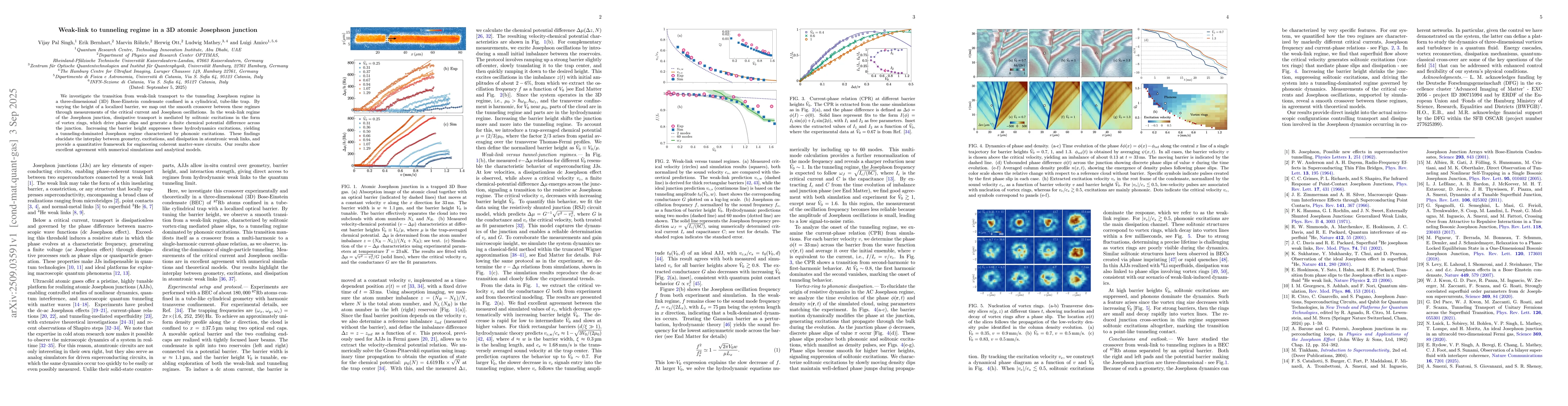 We investigate the transition from weak-link transport to the tunneling Josephson regime in a three-dimensional (3D) Bose-Einstein condensate confined in a cylindrical, tube-like trap. By varying the height of a localized barrier, we map out the smooth crossover between these regimes through measurements of the critical current and Josephson oscillations. In the weak-link regime of the Josephson junction, dissipative transport is mediated by solitonic excitations in the form of vortex rings, which drive phase slips and generate a finite chemical potential difference across the junction. Increasing the barrier height suppresses these hydrodynamics excitations, yielding a tunneling-dominated Josephson regime characterized by phononic excitations. These findings elucidate the interplay between geometry, excitations, and dissipation in atomtronic weak links, and provide a quantitative framework for engineering coherent matter-wave circuits. Our results show excellent agreement with numerical simulations and analytical models.