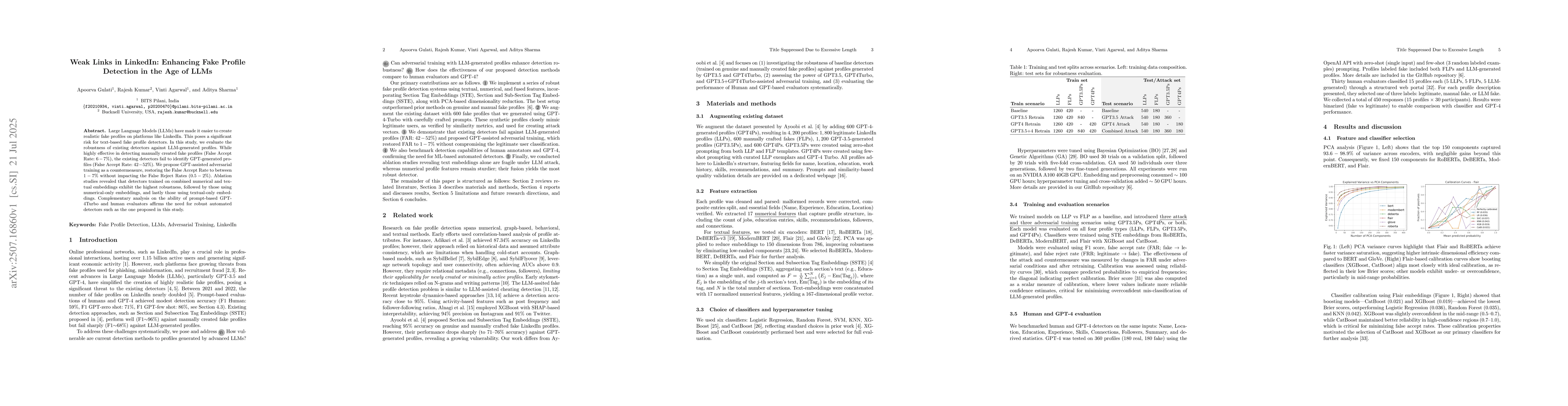 Large Language Models (LLMs) have made it easier to create realistic fake profiles on platforms like LinkedIn. This poses a significant risk for text-based fake profile detectors. In this study, we evaluate the robustness of existing detectors against LLM-generated profiles. While highly effective in detecting manually created fake profiles (False Accept Rate: 6-7%), the existing detectors fail to identify GPT-generated profiles (False Accept Rate: 42-52%). We propose GPT-assisted adversarial training as a countermeasure, restoring the False Accept Rate to between 1-7% without impacting the False Reject Rates (0.5-2%). Ablation studies revealed that detectors trained on combined numerical and textual embeddings exhibit the highest robustness, followed by those using numerical-only embeddings, and lastly those using textual-only embeddings. Complementary analysis on the ability of prompt-based GPT-4Turbo and human evaluators affirms the need for robust automated detectors such as the one proposed in this study.