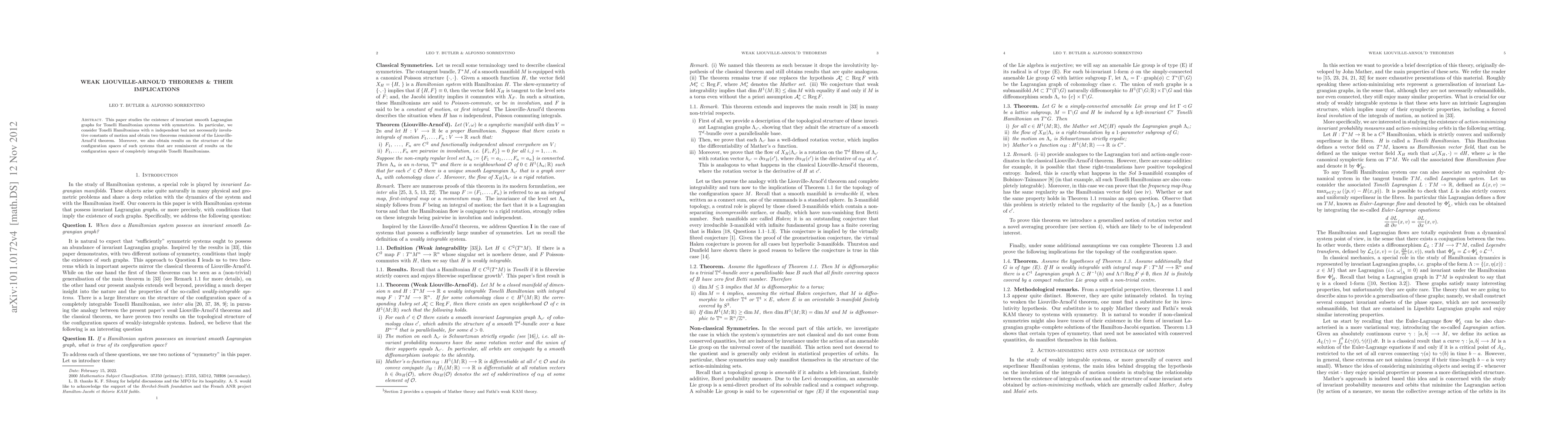 This paper establishes two theorems akin to the Liouville-Arnold theorem for Tonelli Hamiltonian systems with n independent constants of motion, even when these constants are not necessarily involutive. It also explores the structural properties of the configuration spaces of these systems.