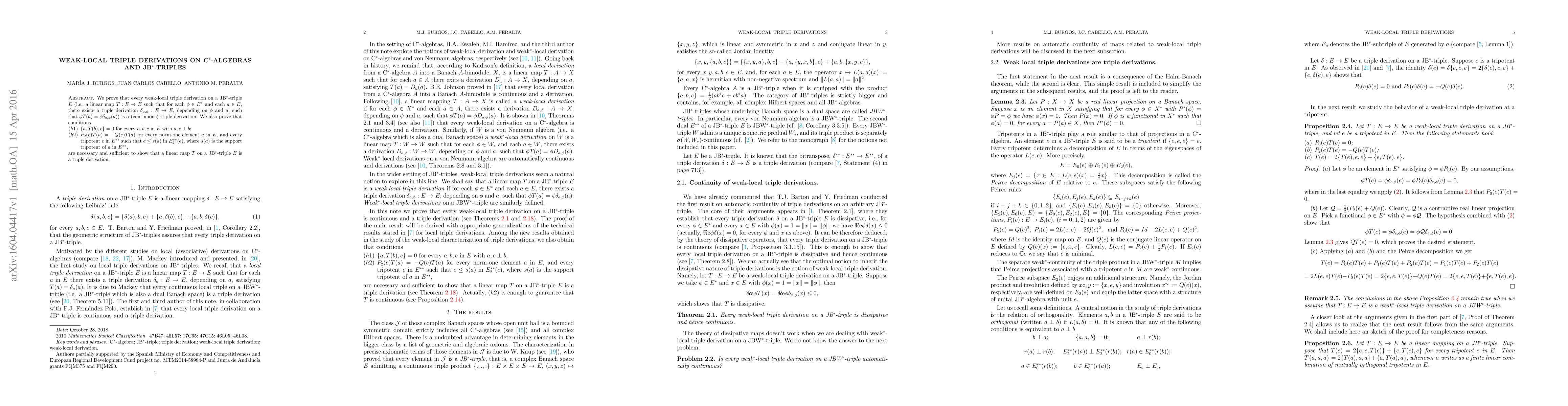 This paper demonstrates that any weak-local triple derivation on a JB$^*$-triple $E$ is equivalent to a continuous triple derivation, thereby establishing a fundamental property of such derivations within the structure of JB$^*$-triples.