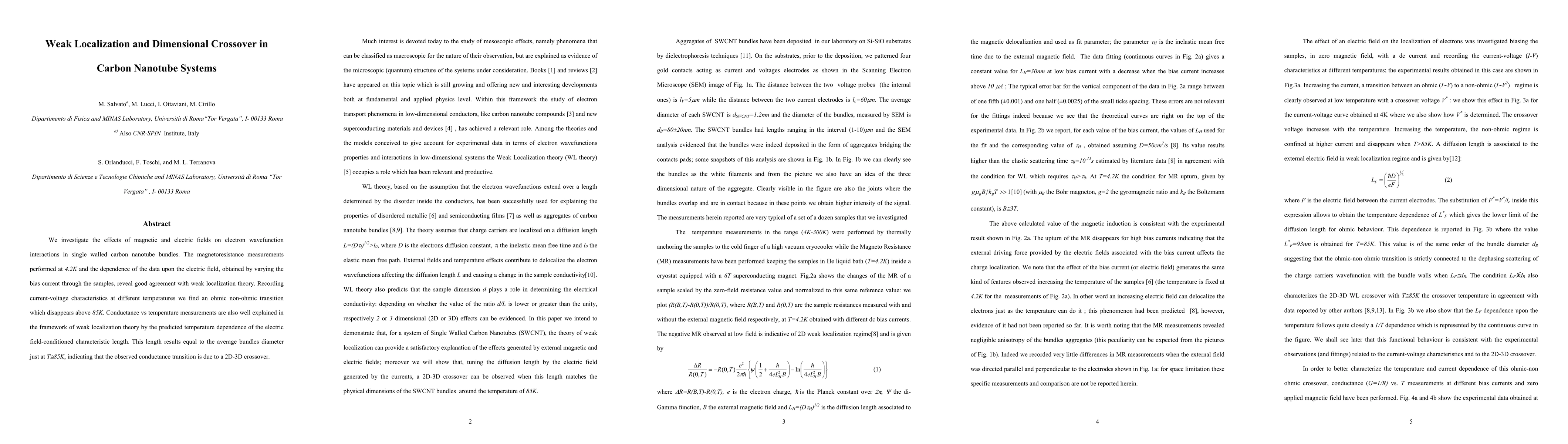 Researchers study carbon nanotube bundles under magnetic and electric fields, finding agreement with weak localization theory, and discover a 2D-3D crossover at 85K that affects conductance.