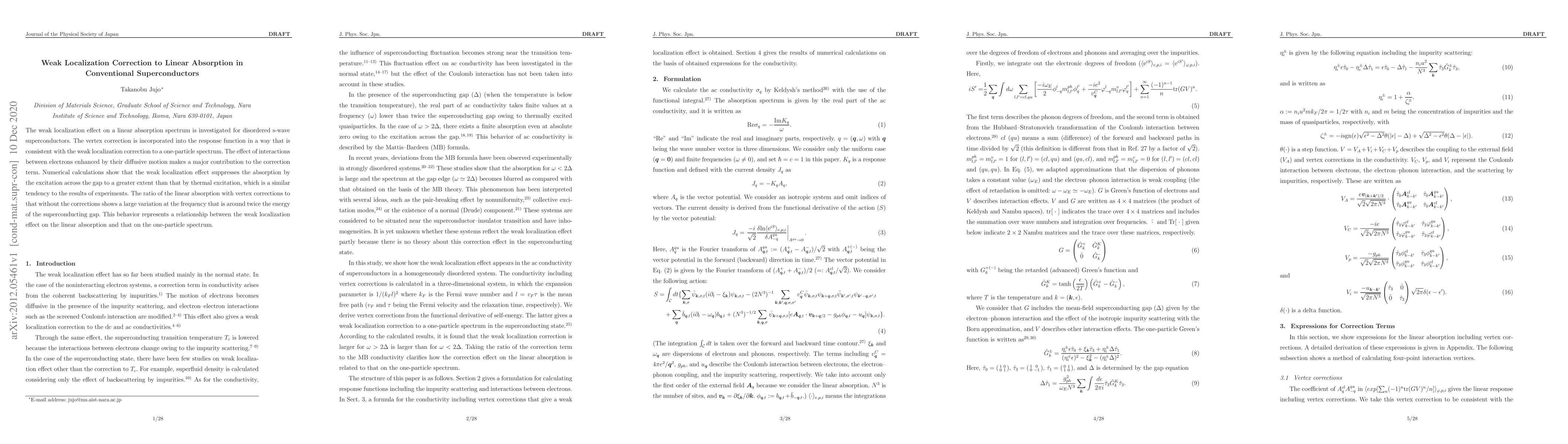 Researchers investigate how a quantum effect known as weak localization impacts absorption in superconductors, finding it suppresses certain types of excitation more than others.