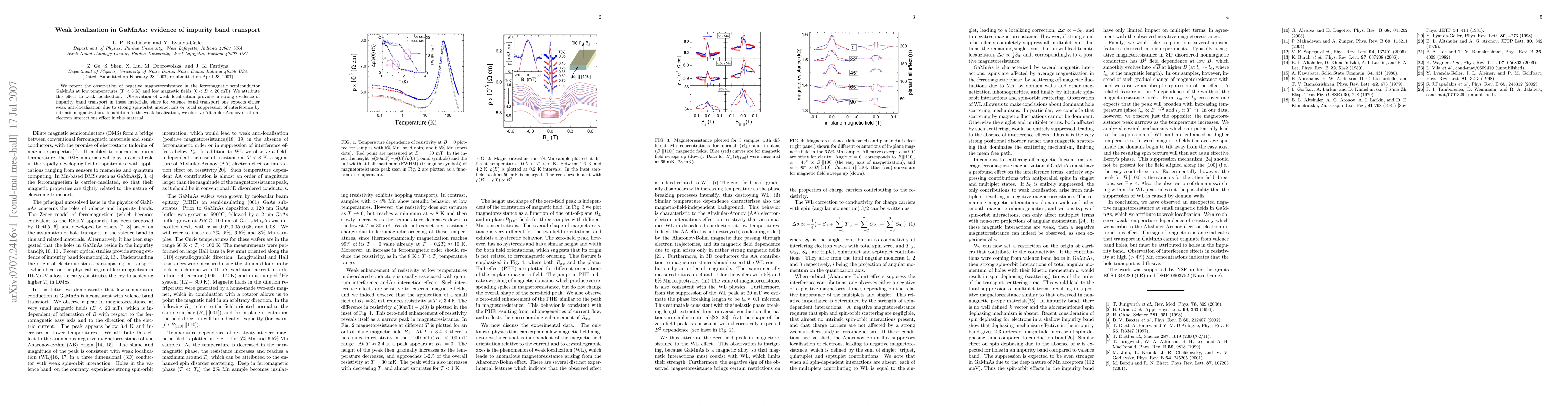 This paper reports negative magnetoresistance in GaMnAs at low temperatures and fields, attributing it to weak localization, which supports impurity band transport. The study also observes the Altshuler-Aronov effect, indicating electron-electron interactions in the material.