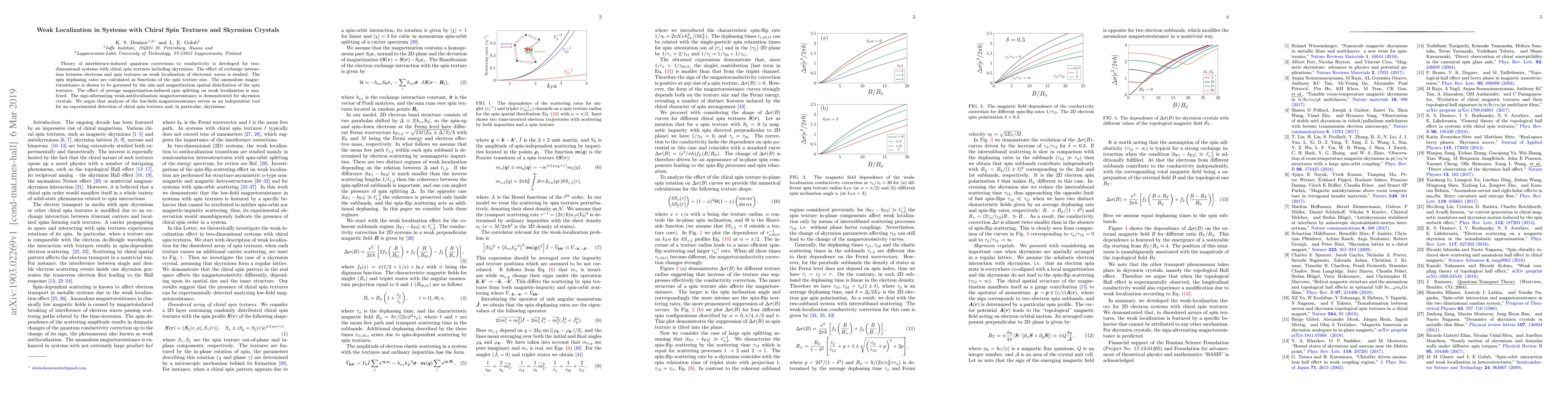 This paper develops a theory for quantum corrections to conductivity in 2D systems with chiral spin textures, including skyrmions, and examines the impact of electron-spin interactions on weak localization. It demonstrates the role of spin texture size and magnetization distribution in anomalous magnetoresistance and shows that weak localization can be used to detect chiral spin textures and skyrmions.