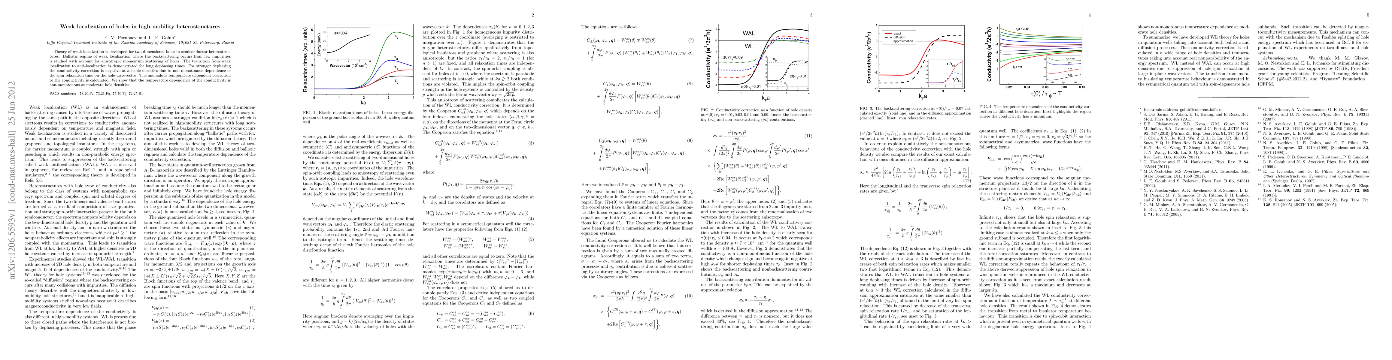 Theory of weak localization is developed for two-dimensional holes in semiconductor heterostructures. Ballistic regime of weak localization where the backscattering occurs from few impurities is studied with account for anisotropic momentum scattering of holes. The transition from weak localization to anti-localization is demonstrated for long dephasing times. For stronger dephasing the conductivity correction is negative at all hole densities due to non-monotonous dependence of the spin relaxation time on the hole wavevector. The anomalous temperature dependent correction to the conductivity is calculated. We show that the temperature dependence of the conductivity is non-monotonous at moderate hole densities.