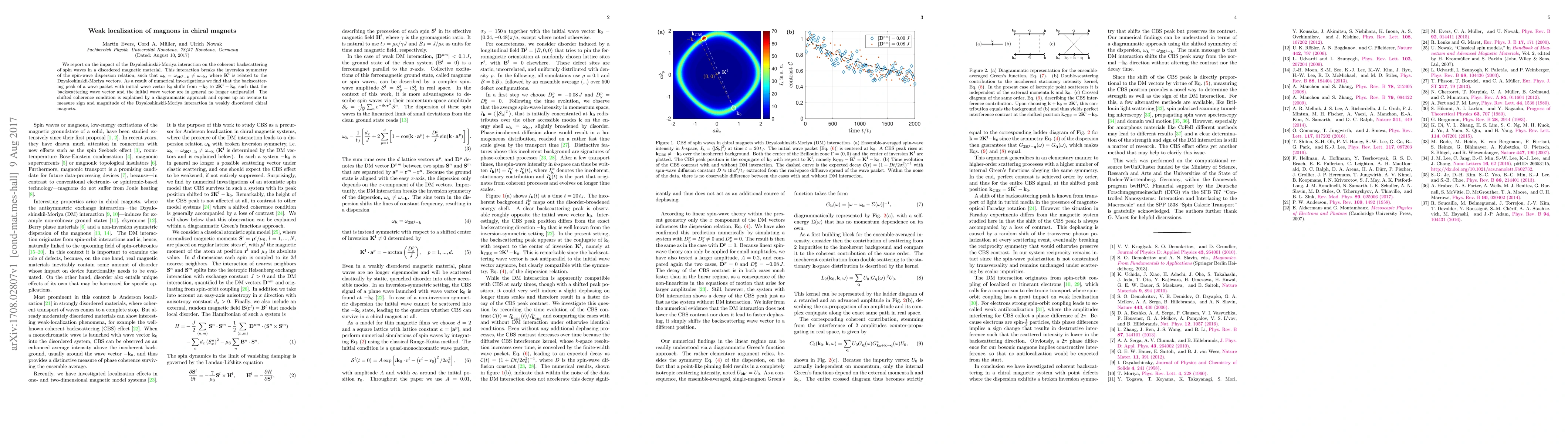 We report on the impact of the Dzyaloshinskii-Moriya interaction on the coherent backscattering of spin waves in a disordered magnetic material. This interaction breaks the inversion symmetry of the spin-wave dispersion relation, such that $\omega_\mathbf{k} = \omega_{2\mathbf{K}^\mathrm{I}-\mathbf{k}} \neq \omega_{-\mathbf{k}}$, where $\mathbf{K}^\mathrm{I}$ is related to the Dzyaloshinskii-Moriya vectors. As a result of numerical investigations we find that the backscattering peak of a wave packet with initial wave vector $\mathbf{k}_0$ shifts from $-\mathbf{k}_0$ to $2\mathbf{K}^\mathrm{I}-\mathbf{k}_0$, such that the backscattering wave vector and the initial wave vector are in general no longer antiparallel. The shifted coherence condition is explained by a diagrammatic approach and opens up an avenue to measure sign and magnitude of the Dzyaloshinskii-Moriya interaction in weakly disordered chiral magnets.
