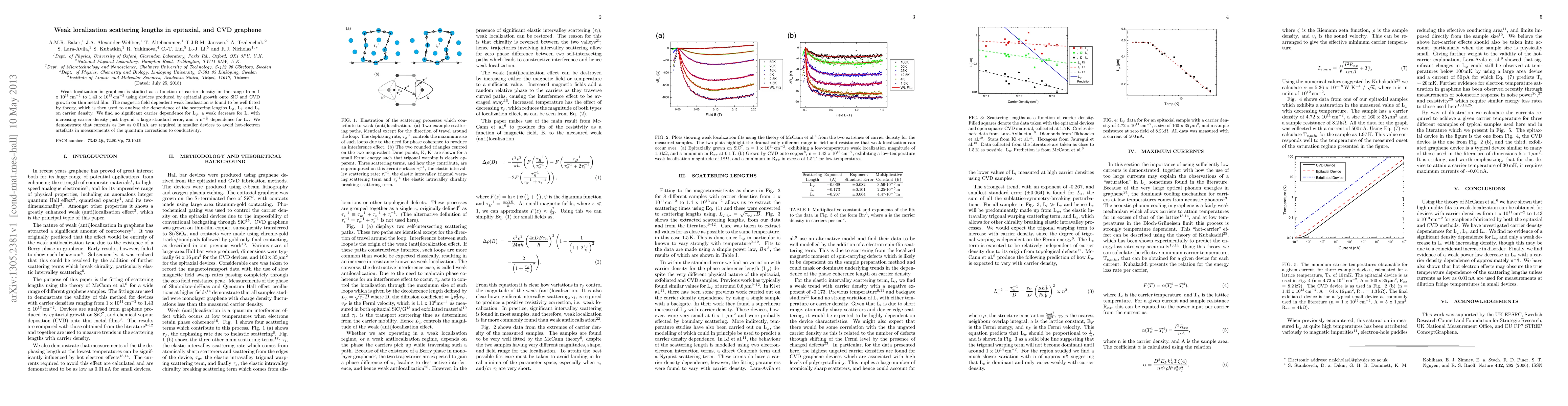 Weak localization in graphene is studied as a function of carrier density in the range from 1 x $10^{11}$\,cm$^{-2}$ to 1.43 x $10^{13}$\,cm$^{-2}$ using devices produced by epitaxial growth onto SiC and CVD growth on thin metal film. The magnetic field dependent weak localization is found to be well fitted by theory, which is then used to analyse the dependence of the scattering lengths L$_\varphi$, L$_i$, and L$_*$ on carrier density. We find no significant carrier dependence for L$_\varphi$, a weak decrease for L$_i$ with increasing carrier density just beyond a large standard error, and a n$^{-\frac{1}{4}}$ dependence for L$_*$. We demonstrate that currents as low as 0.01\,nA are required in smaller devices to avoid hot-electron artefacts in measurements of the quantum corrections to conductivity.