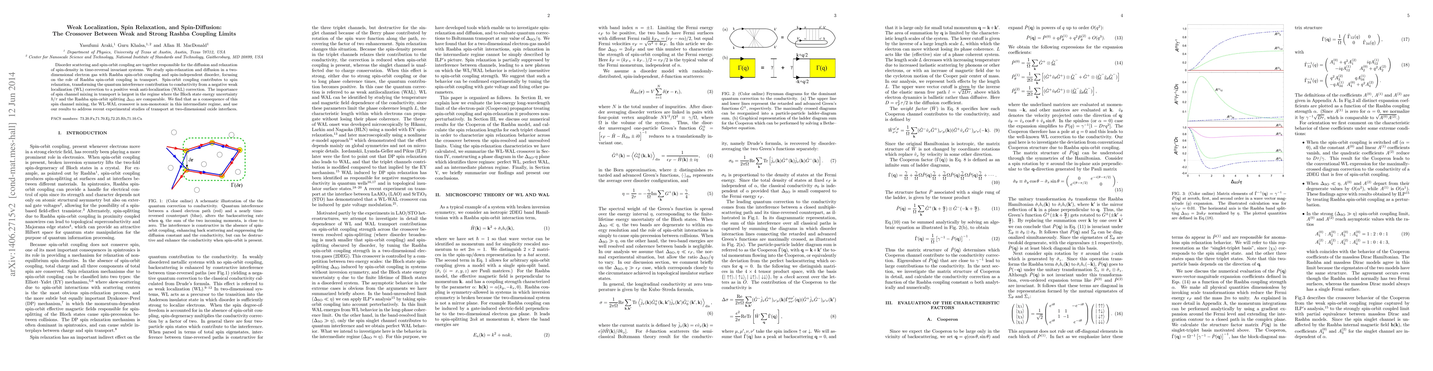 This paper investigates spin relaxation and diffusion in a two-dimensional electron gas under Rashba spin-orbit coupling and spin-independent disorder, highlighting the crossover between weak and strong coupling regimes. The study reveals a non-monotonic WL-WAL crossover due to spin channel mixing when the energy uncertainty and Rashba splitting are comparable.