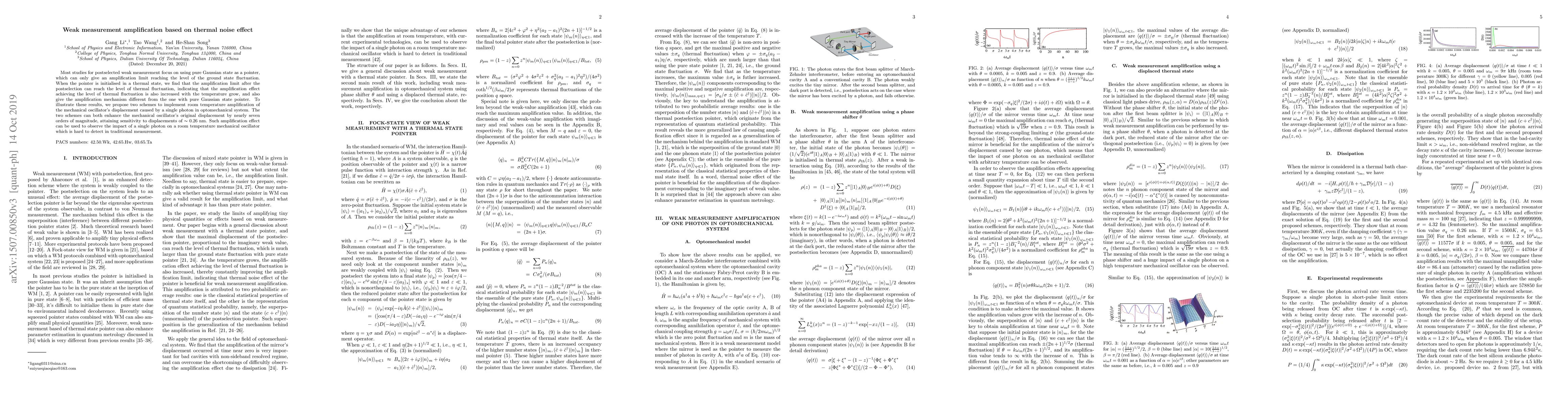 This paper explores weak measurement amplification using thermal noise, demonstrating that initializing the pointer in a thermal state can enhance the amplification limit to the level of thermal fluctuations, significantly improving sensitivity. Two optomechanical schemes are proposed to achieve nearly seven orders of magnitude amplification, enabling detection of single photon impacts on room temperature mechanical oscillators.