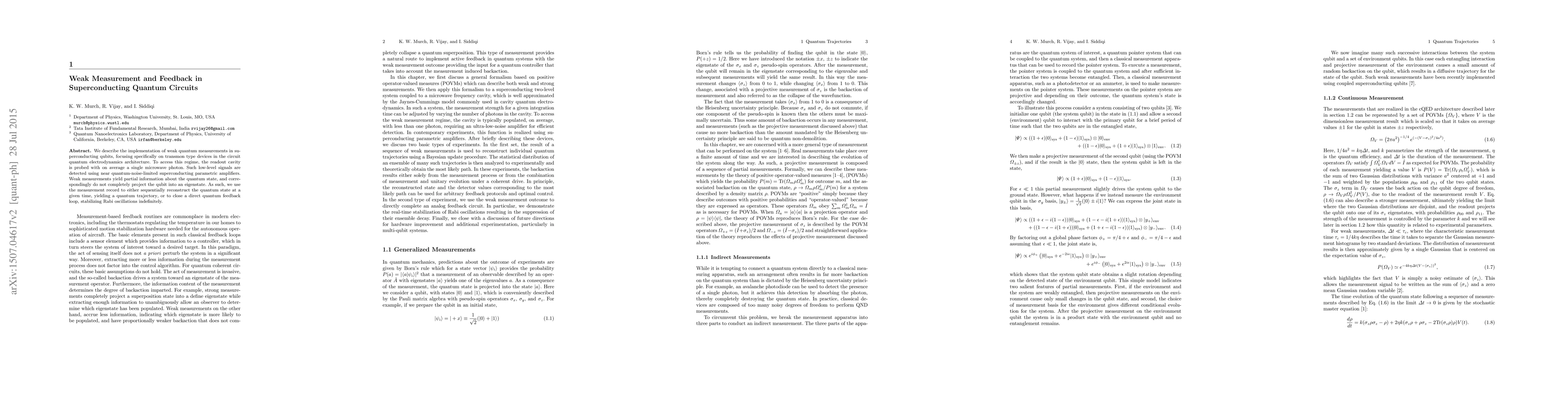This paper details the application of weak quantum measurements in superconducting transmon qubits within the circuit quantum electrodynamics framework, utilizing single-photon readout cavities and near quantum-noise-limited amplifiers. The results enable either state reconstruction through quantum trajectories or stabilization of Rabi oscillations via direct quantum feedback.