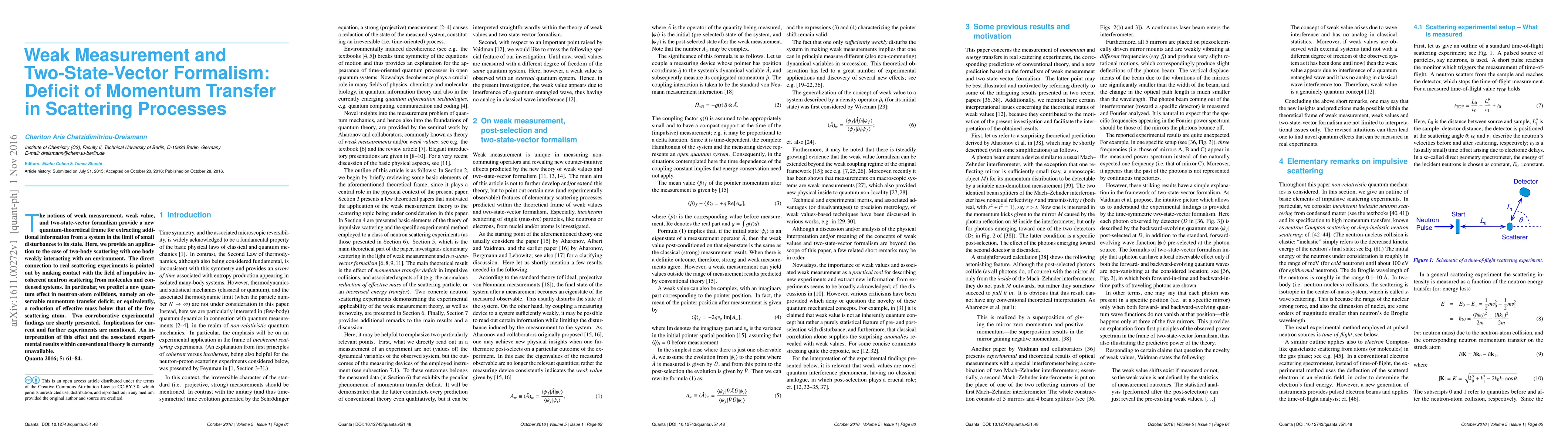 The notions of weak measurement, weak value, and two-state-vector formalism provide a new quantum-theoretical frame for extracting additional information from a system in the limit of small disturbances to its state. Here, we provide an application to the case of two-body scattering with one body weakly interacting with an environment. The direct connection to real scattering experiments is pointed out by making contact with the field of impulsive incoherent neutron scattering from molecules and condensed systems. In particular, we predict a new quantum effect in neutron-atom collisions, namely an observable momentum transfer deficit; or equivalently, a reduction of effective mass below that of the free scattering atom. Two corroborative experimental findings are shortly presented. Implications for current and further experiments are mentioned. An interpretation of this effect and the associated experimental results within conventional theory is currently unavailable.