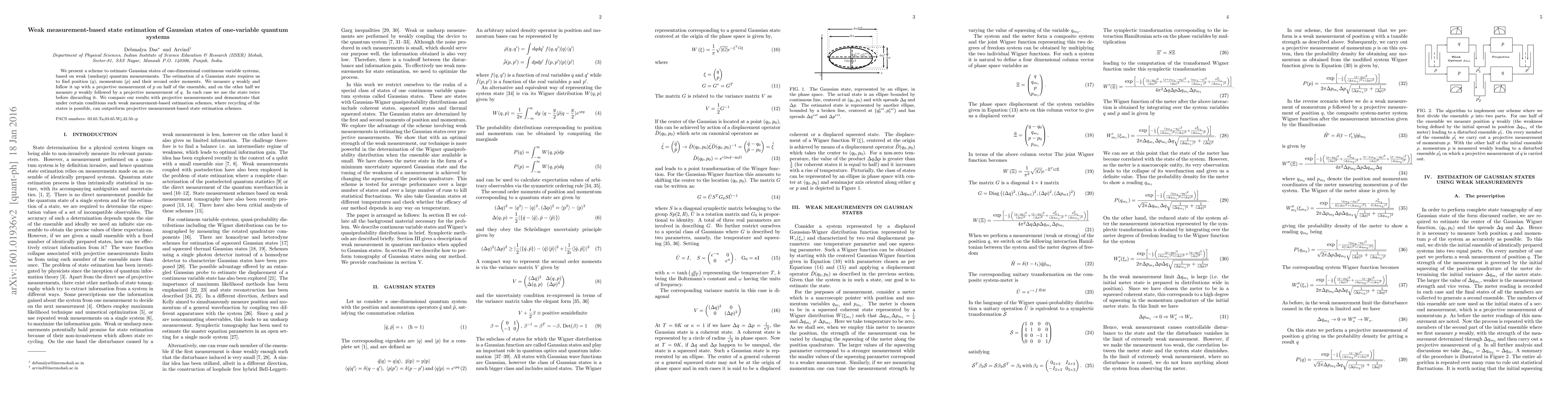 This paper proposes a weak measurement-based scheme for estimating Gaussian states in one-dimensional quantum systems, utilizing weak measurements followed by projective measurements to achieve better estimation than projective measurements alone under certain conditions. The method recycles the quantum states for improved performance.