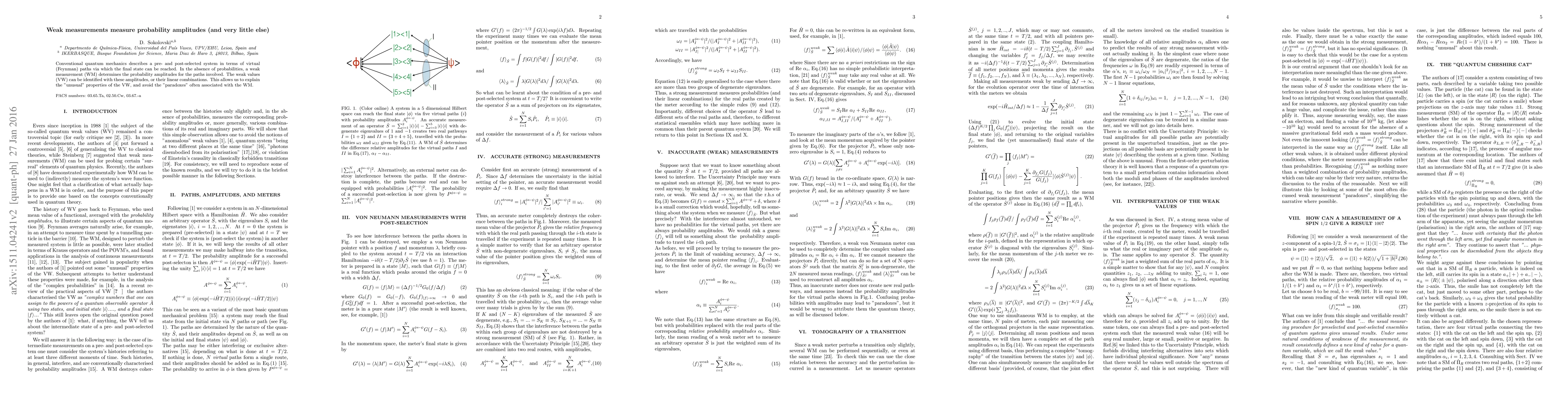 Conventional quantum mechanics describes a pre- and post-selected system in terms of virtual (Feynman) paths via which the final state can be reached. In the absence of probabilities, a weak measurement (WM) determines the probability amplitudes for the paths involved. The weak values (VW) can be identified with these amplitudes, or their linear combinations. This allows us to explain the "unusual" properties of the VW, and avoid the "paradoxes" often associated with the WM.