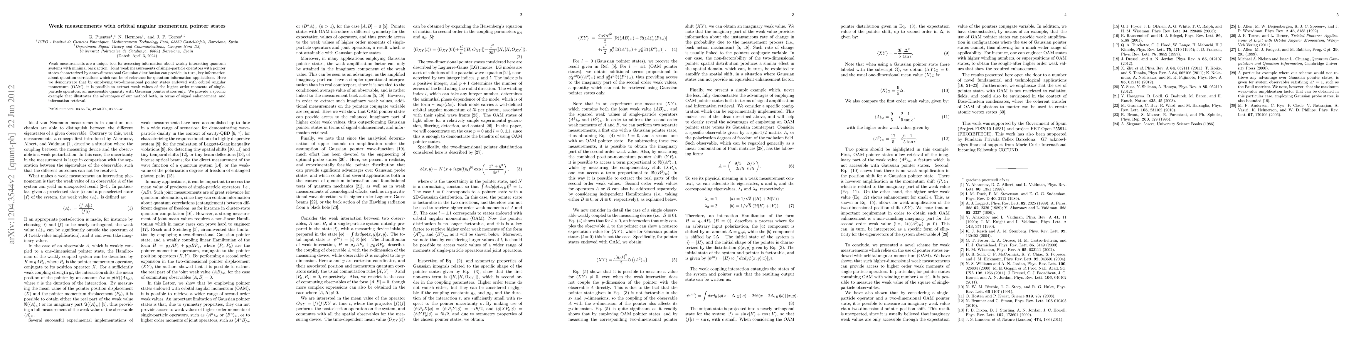 This paper demonstrates the use of weak measurements with orbital angular momentum pointer states to extract higher-order moments of single-particle operators, providing enhanced signal and information retrieval compared to Gaussian pointer states. The method is shown to be advantageous for quantum information applications.