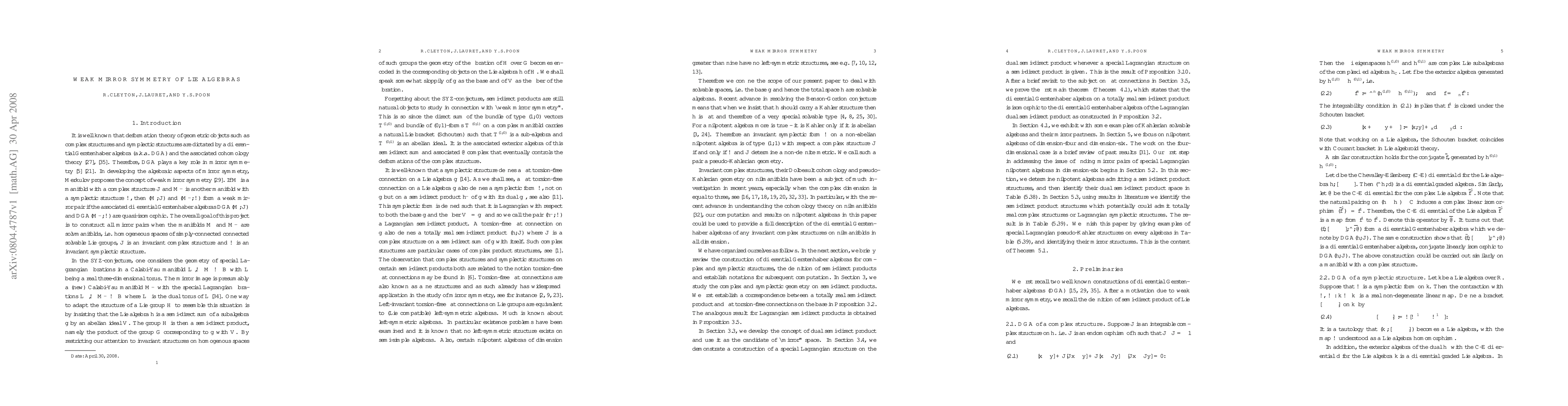 The existence of a flat torsion-free connection, or left symmetric algebra structure on a Lie algebra g gives rise to a canonically defined complex structure on g+g and a symplectic structure on g+g^*. We verify that the associated differential Gerstenhaber algebras controlling the deformation theories of the complex and symplectic form are isomorphic. This provides a class of examples of "weak mirror symmetry" as suggested by Merkulov. For nilpotent algebras in dimension 4 and 6 the isomorphism classes of the semi-direct products g+g and g+g^* are listed. A one-parameter family of inequivalent pseudo-K\"ahler structures is given.