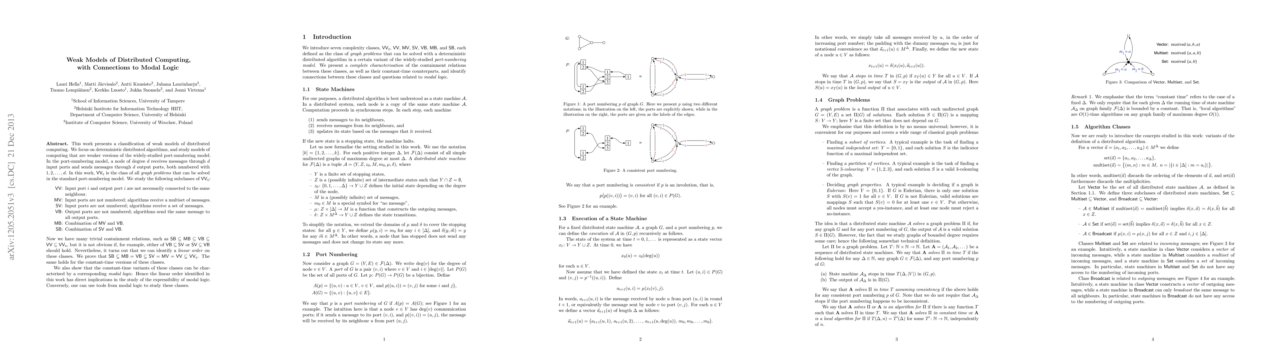 Researchers classified 6 weak models of distributed computing into a linear order, showing that some classes are subsets of others, with implications for modal logic.