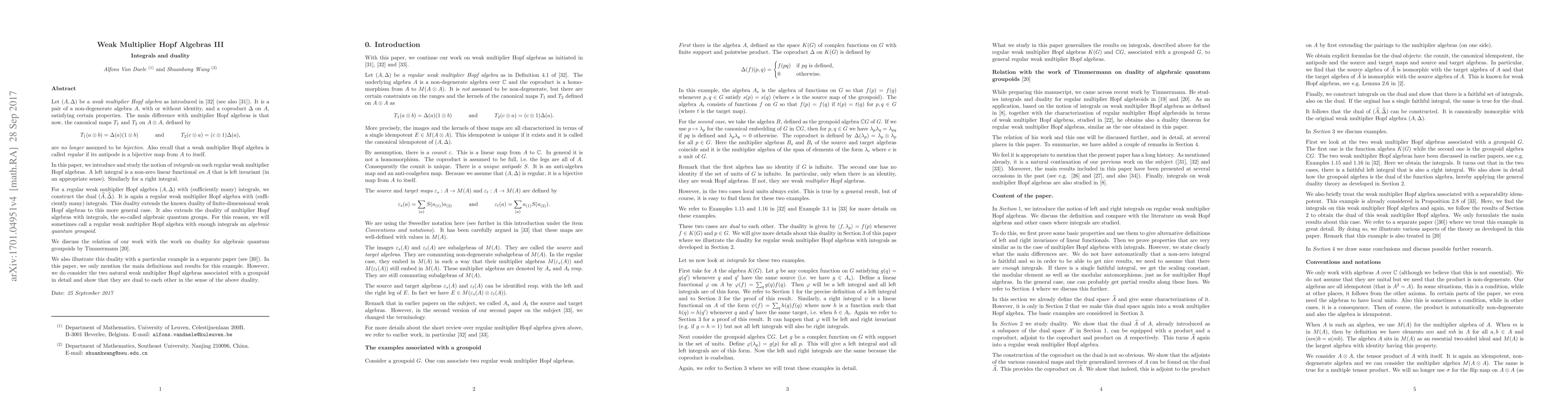 This paper studies regular weak multiplier Hopf algebras, introducing integrals and constructing their duals. It extends the known duality for finite-dimensional weak Hopf algebras and algebraic quantum groups to these generalized structures, illustrating the duality with specific examples related to groupoids.