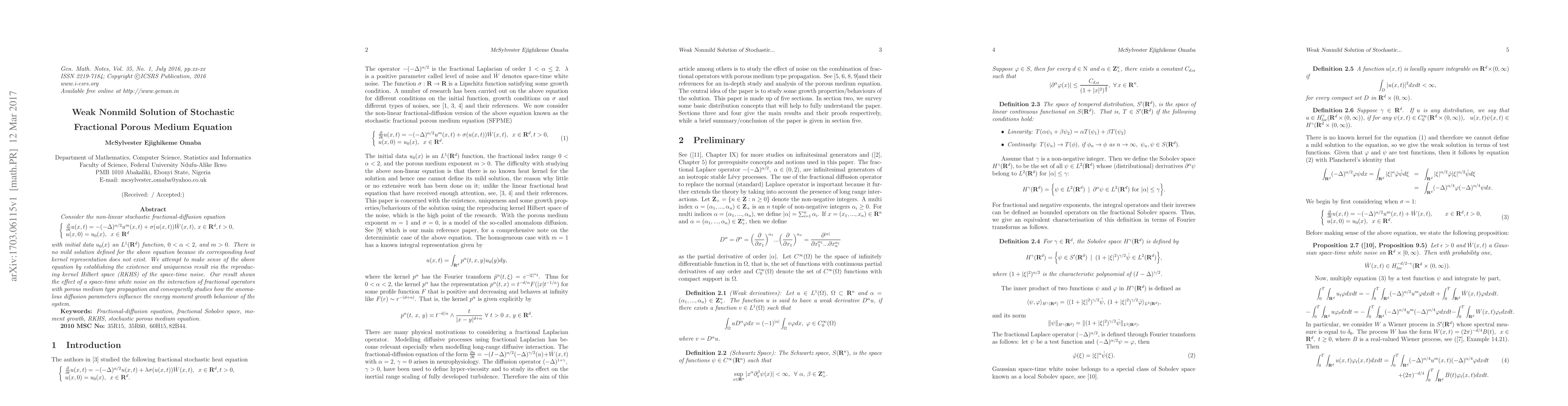 A study on a complex partial differential equation with stochastic terms finds that anomalous diffusion parameters influence energy moment growth behavior in porous medium type propagation. A non-standard solution approach is used to analyze the effect of space-time white noise on the interaction between fractional operators.
