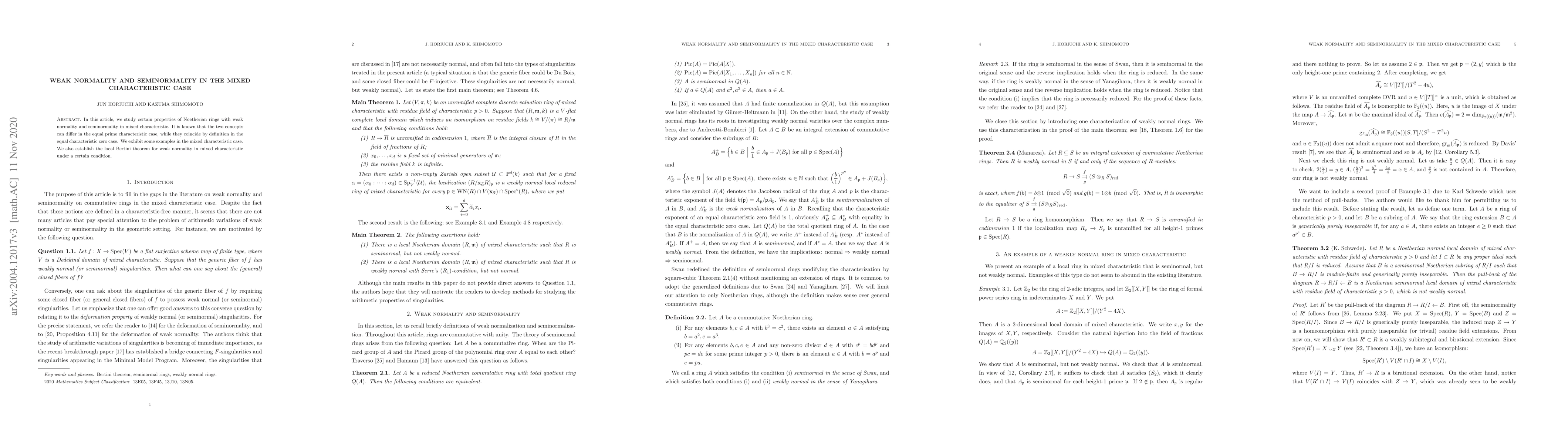 This paper provides examples of local rings illustrating differences between weak normality and seminormality in mixed characteristic settings, establishing the local Bertini theorem for weak normality under specific conditions. It fills a gap in existing literature by documenting these distinctions in mixed characteristic cases.