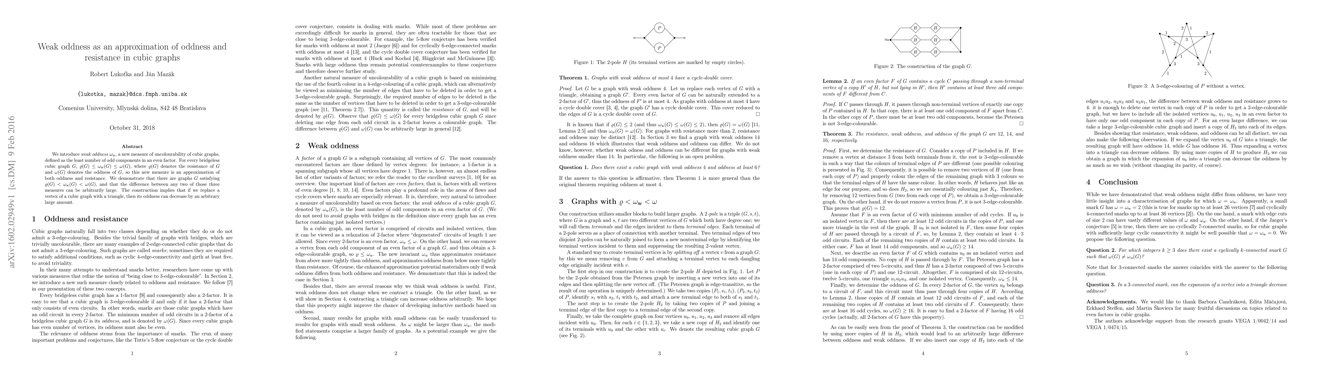 This research introduces 'weak oddness' (omega_w), a new measure for assessing the uncolourability of cubic graphs, approximating both oddness and resistance. It demonstrates that the difference between weak oddness, resistance, and oddness can be significantly large, and modifying a cubic graph by replacing a vertex with a triangle can drastically reduce its oddness.