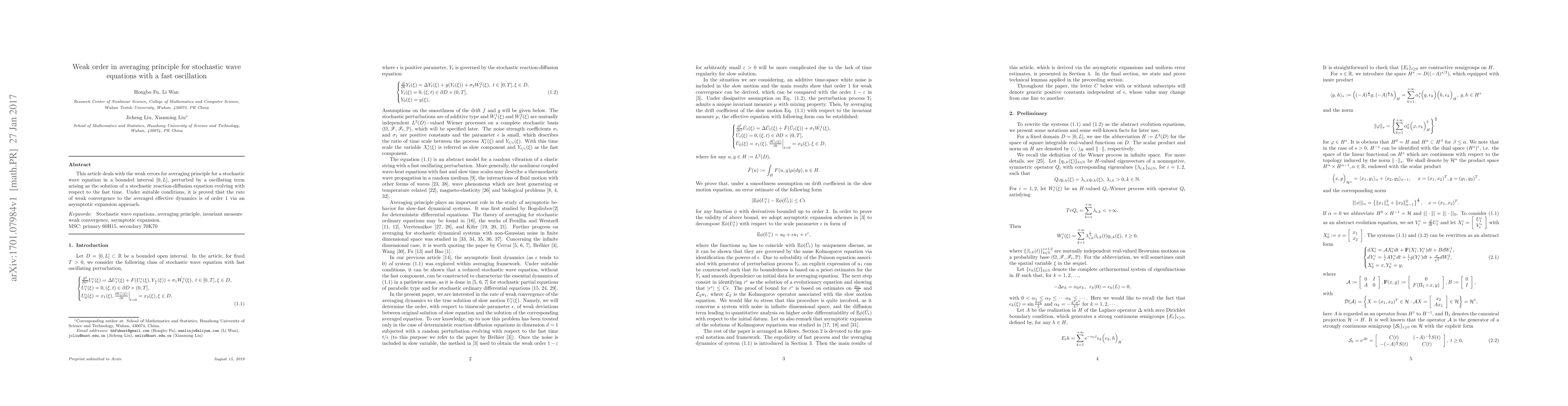 This article deals with the weak errors for averaging principle for a stochastic wave equation in a bounded interval $[0,L]$, perturbed by a oscillating term arising as the solution of a stochastic reaction-diffusion equation evolving with respect to the fast time. Under suitable conditions, it is proved that the rate of weak convergence to the averaged effective dynamics is of order $1$ via an asymptotic expansion approach.