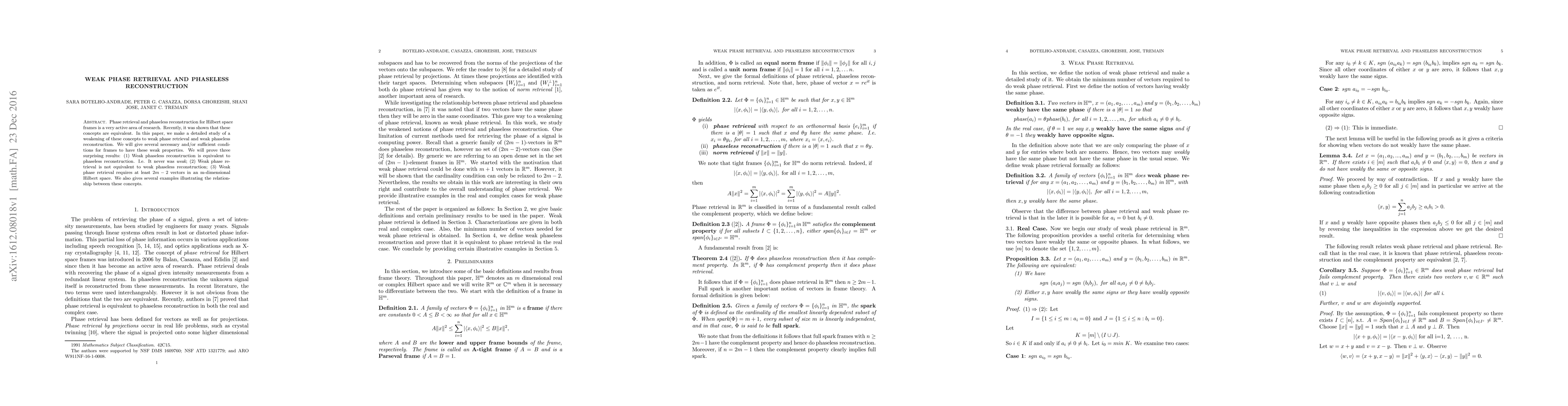 Phase retrieval and phaseless reconstruction for Hilbert space frames is a very active area of research. Recently, it was shown that these concepts are equivalent. In this paper, we make a detailed study of a weakening of these concepts to weak phase retrieval and weak phaseless reconstruction. We will give several necessary and/or sufficient conditions for frames to have these weak properties. We will prove three surprising results: (1) Weak phaseless reconstruction is equivalent to phaseless reconstruction. I.e. It never was "weak"; (2) Weak phase retrieval is not equivalent to weak phaseless reconstruction; (3) Weak phase retrieval requires at least $2m-2$ vectors in an m-dimensional Hilbert space. We also gives several examples illustrating the relationship between these concepts.