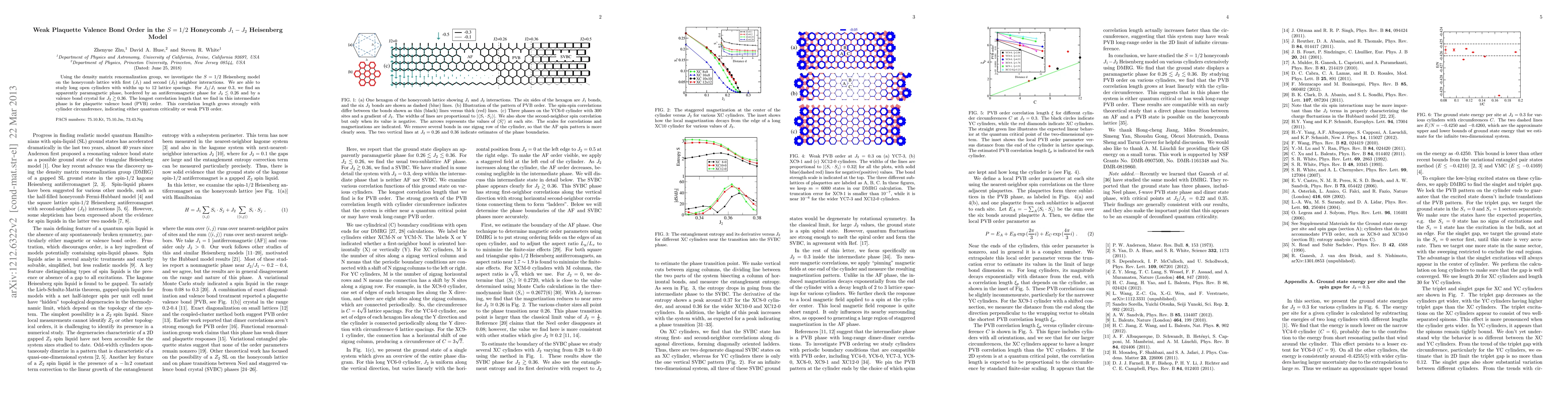 This paper uses the density matrix renormalization group to study the $S=1/2$ Heisenberg model on a honeycomb lattice with $J_1$ and $J_2$ interactions. It finds a paramagnetic phase near $J_2/J_1$ = 0.3, characterized by a weak plaquette valence bond order, suggesting either quantum criticality or a novel weak PVB phase.