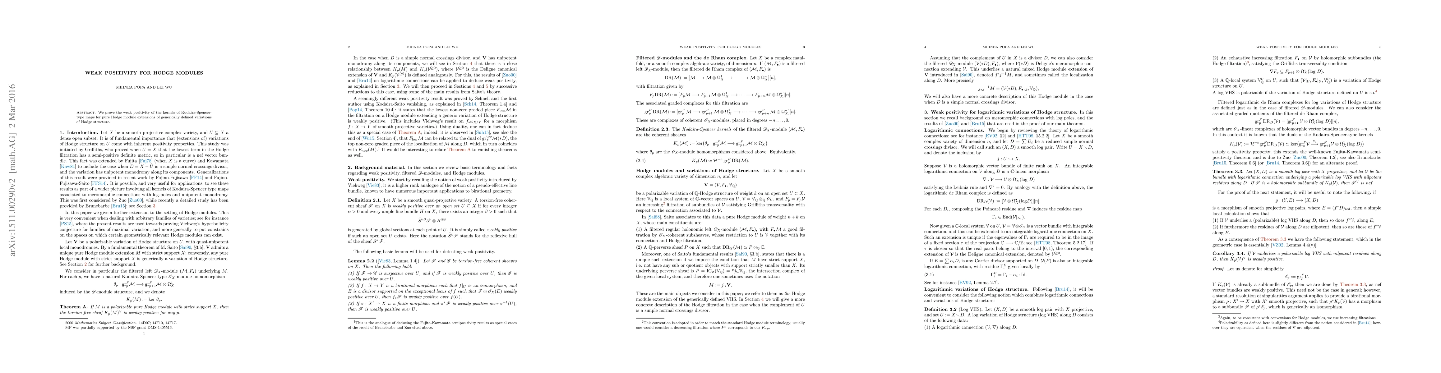 Summary: This paper establishes the weak positivity of the kernels associated with Kodaira-Spencer maps for pure Hodge module extensions, enhancing our understanding of variations of Hodge structures. The result contributes to the broader field of algebraic geometry and Hodge theory.