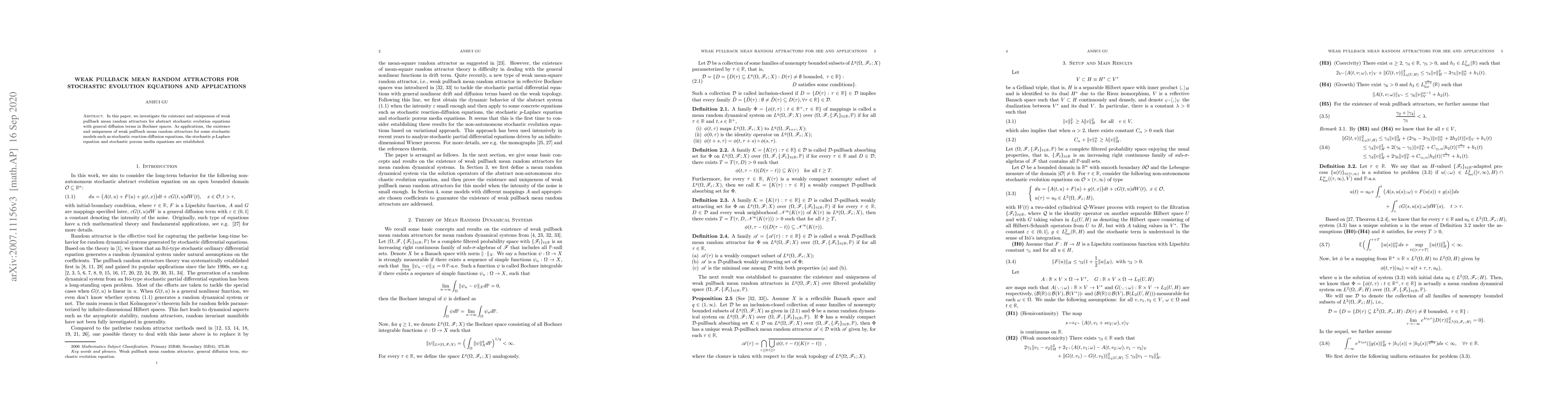 In this paper, we investigate the existence and uniqueness of weak pullback mean random attractors for abstract stochastic evolution equations with general diffusion terms in Bochner spaces. As applications, the existence and uniqueness of weak pullback mean random attractors for some stochastic models such as stochastic reaction-diffusion equations, the stochastic $p$-Laplace equation and stochastic porous media equations are established.