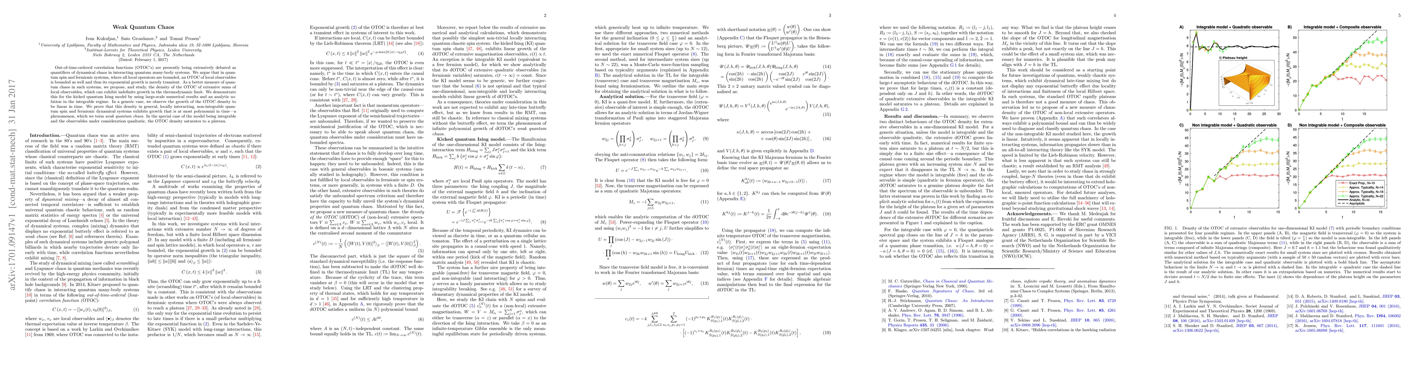 This paper proposes that in bounded quantum systems, the traditional out-of-time-ordered correlation functions (OTOCs) exhibit only transient chaos, while the density of OTOCs for extensive sums of local observables shows indefinite growth, termed "weak quantum chaos," which can be polynomial in time. This concept is demonstrated in the kicked quantum Ising model.