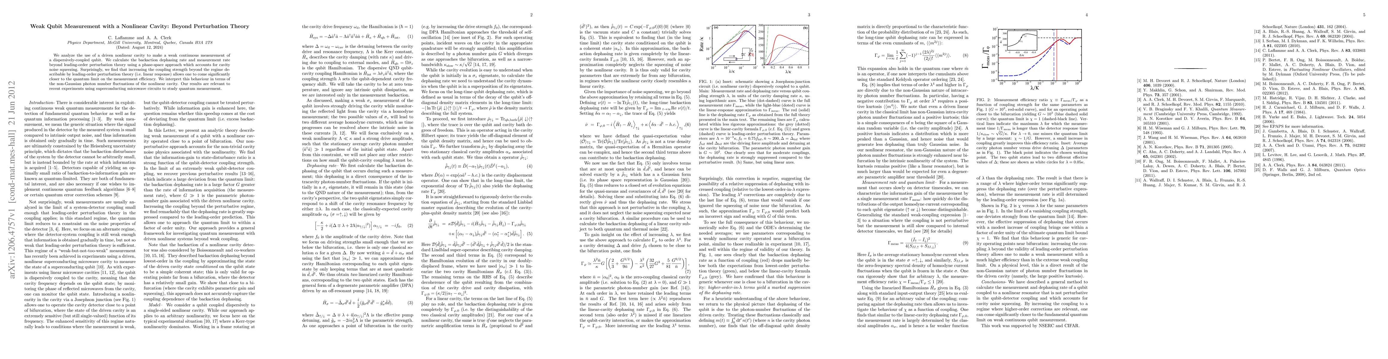 This paper investigates the use of a driven nonlinear cavity for weak continuous qubit measurement, finding that beyond leading-order perturbation theory, increased coupling strength can approach the quantum limit on measurement efficiency due to non-Gaussian photon number fluctuations. This approach provides insights into recent experiments using superconducting microwave circuits.