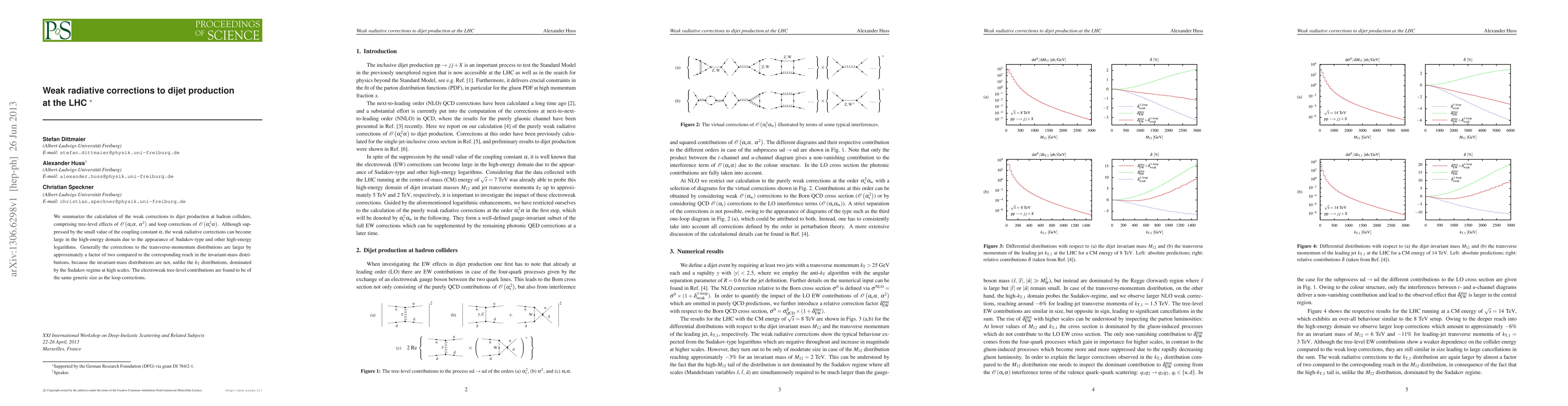 Researchers found that weak radiative corrections to dijet production at the LHC can become significant in high-energy collisions, affecting transverse-momentum distributions more than invariant-mass distributions.