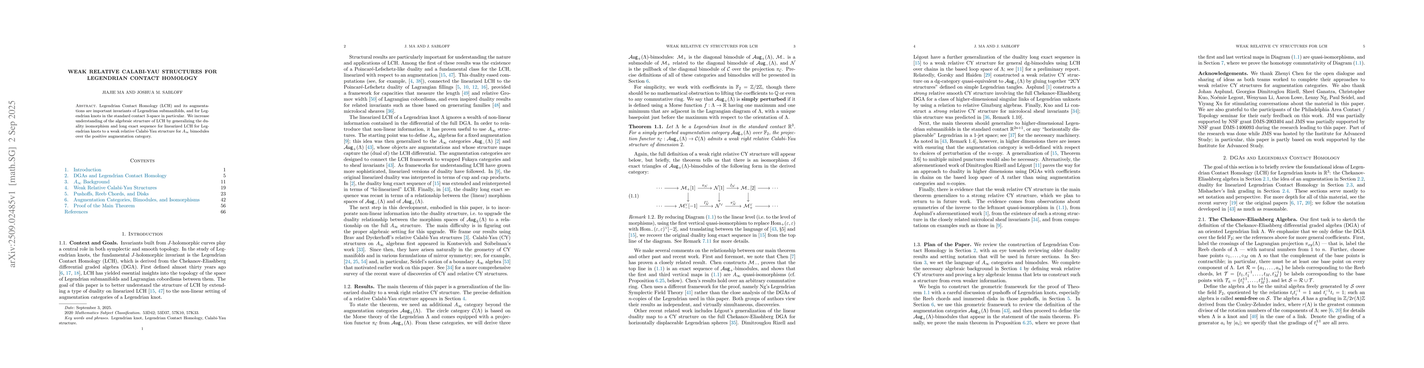 Legendrian Contact Homology (LCH) and its augmentations are important invariants of Legendrian submanifolds, and for Legendrian knots in the standard contact 3-space in particular. We increase understanding of the algebraic structure of LCH by generalizing the duality isomorphism and long exact sequence for linearized LCH for Legendrian knots to a weak relative Calabi-Yau structure for $A_\infty$ bimodules over the positive augmentation category.