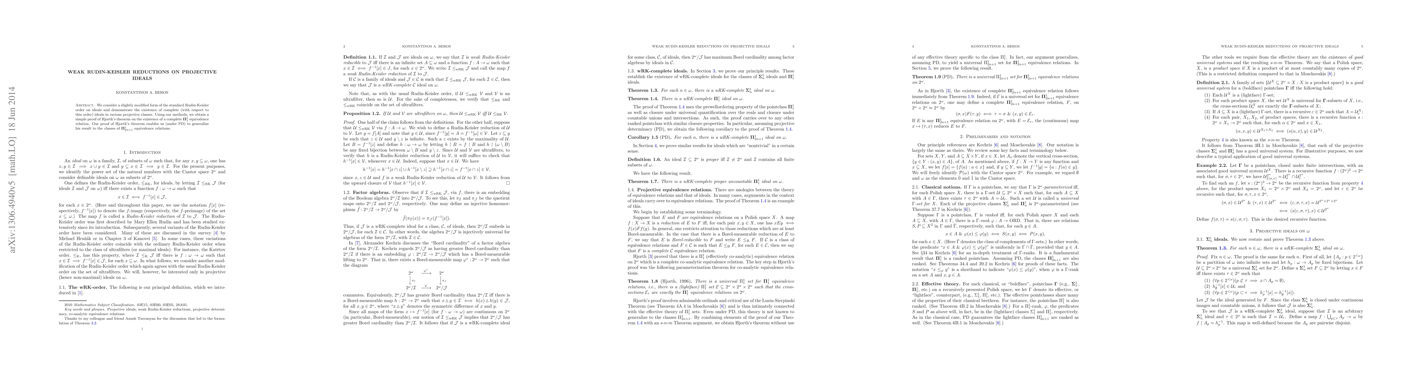 The paper introduces a novel approach to constructing complete ideals using weak Rudin-Keisler reductions and demonstrates its effectiveness in proving Hjorth's theorem and its generalization.