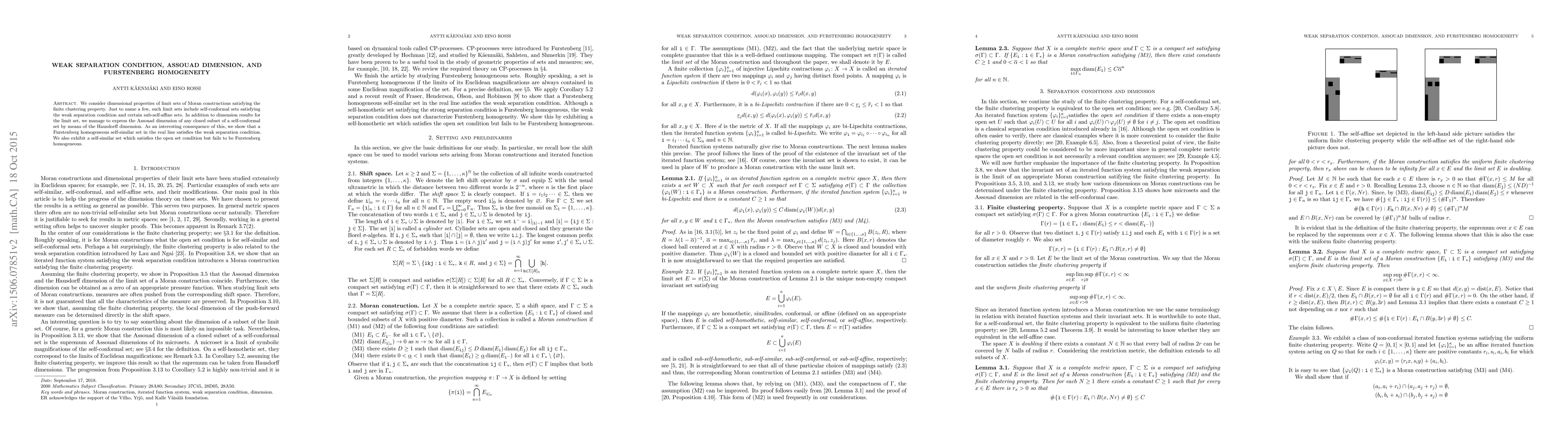 This paper explores dimensional properties of limit sets in Moran constructions, linking Assouad dimension to Hausdorff dimension and showing that Furstenberg homogeneous sets satisfy the weak separation condition.