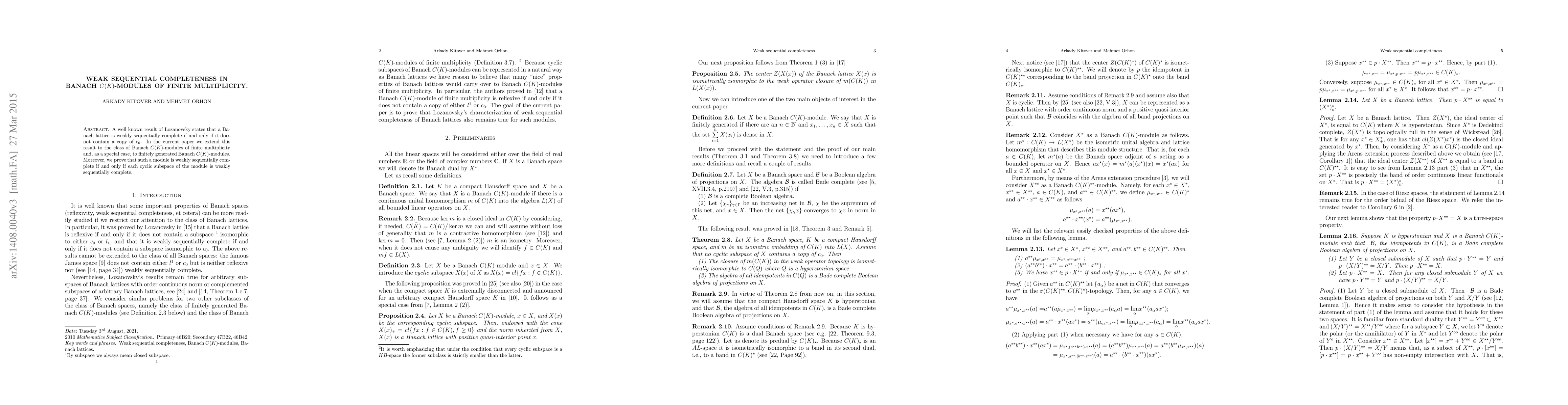 This paper extends a known result to Banach C(K)-modules of finite multiplicity, stating that such modules are weakly sequentially complete if each cyclic subspace is.