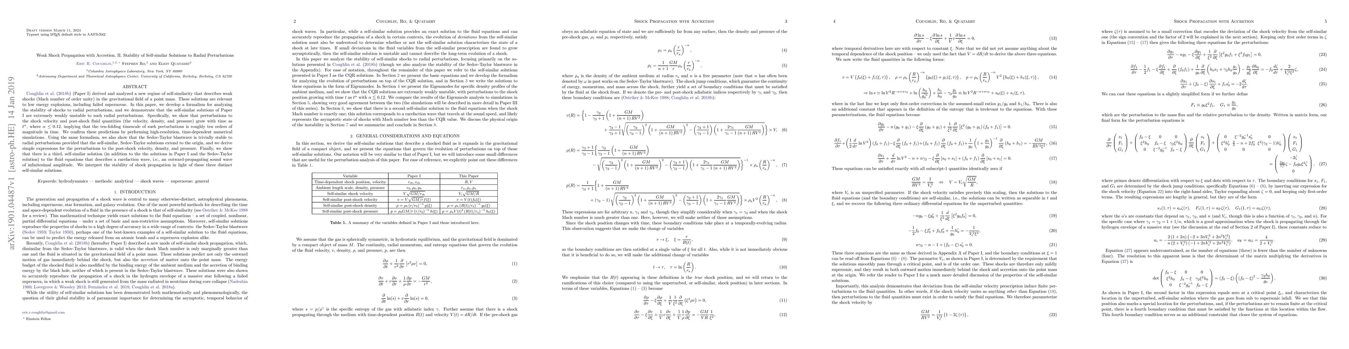 Coughlin et al. (2018) (Paper I) derived and analyzed a new regime of self-similarity that describes weak shocks (Mach number of order unity) in the gravitational field of a point mass. These solutions are relevant to low energy explosions, including failed supernovae. In this paper, we develop a formalism for analyzing the stability of shocks to radial perturbations, and we demonstrate that the self-similar solutions of Paper I are extremely weakly unstable to such radial perturbations. Specifically, we show that perturbations to the shock velocity and post-shock fluid quantities (the velocity, density, and pressure) grow with time as $t^{\alpha}$, where $\alpha \le 0.12$, implying that the ten-folding timescale of such perturbations is roughly ten orders of magnitude in time. We confirm these predictions by performing high-resolution, time-dependent numerical simulations. Using the same formalism, we also show that the Sedov-Taylor blastwave is trivially stable to radial perturbations provided that the self-similar, Sedov-Taylor solutions extend to the origin, and we derive simple expressions for the perturbations to the post-shock velocity, density, and pressure. Finally, we show that there is a third, self-similar solution (in addition to the the solutions in Paper I and the Sedov-Taylor solution) to the fluid equations that describes a rarefaction wave, i.e., an outward-propagating sound wave of infinitesimal amplitude. We interpret the stability of shock propagation in light of these three distinct self-similar solutions.
