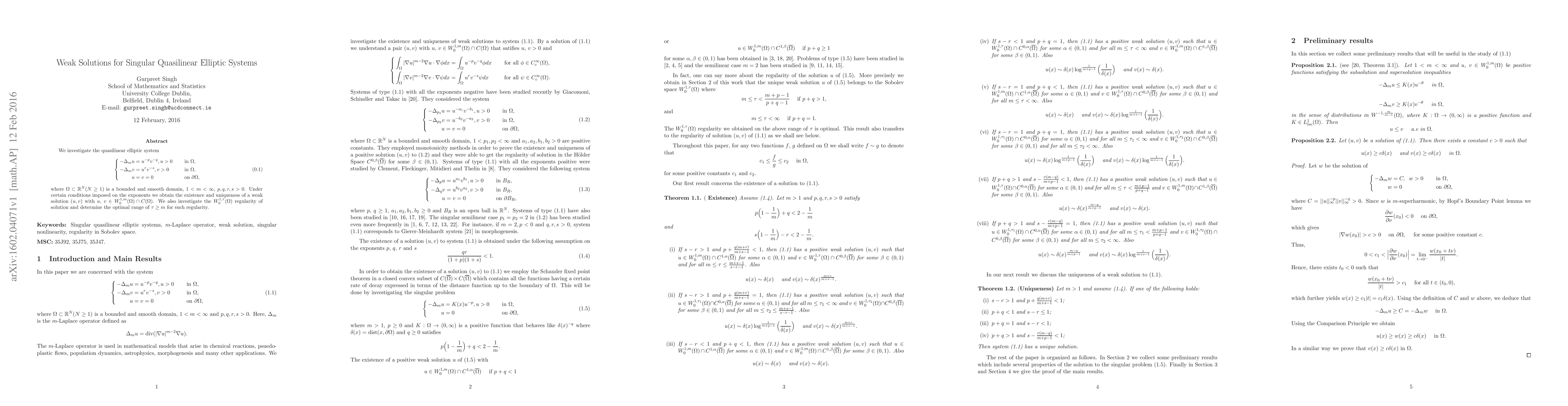 We investigate the quasilinear elliptic system $-\Delta_{m} u&=u^{-p}v^{-q}$,